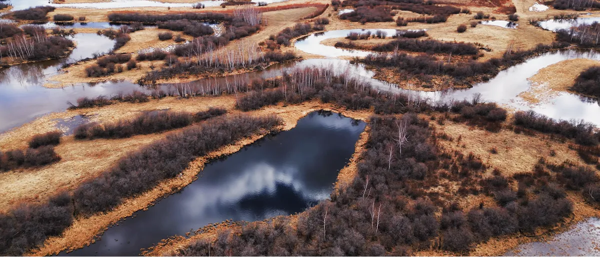 - очертания болот и водоёмов