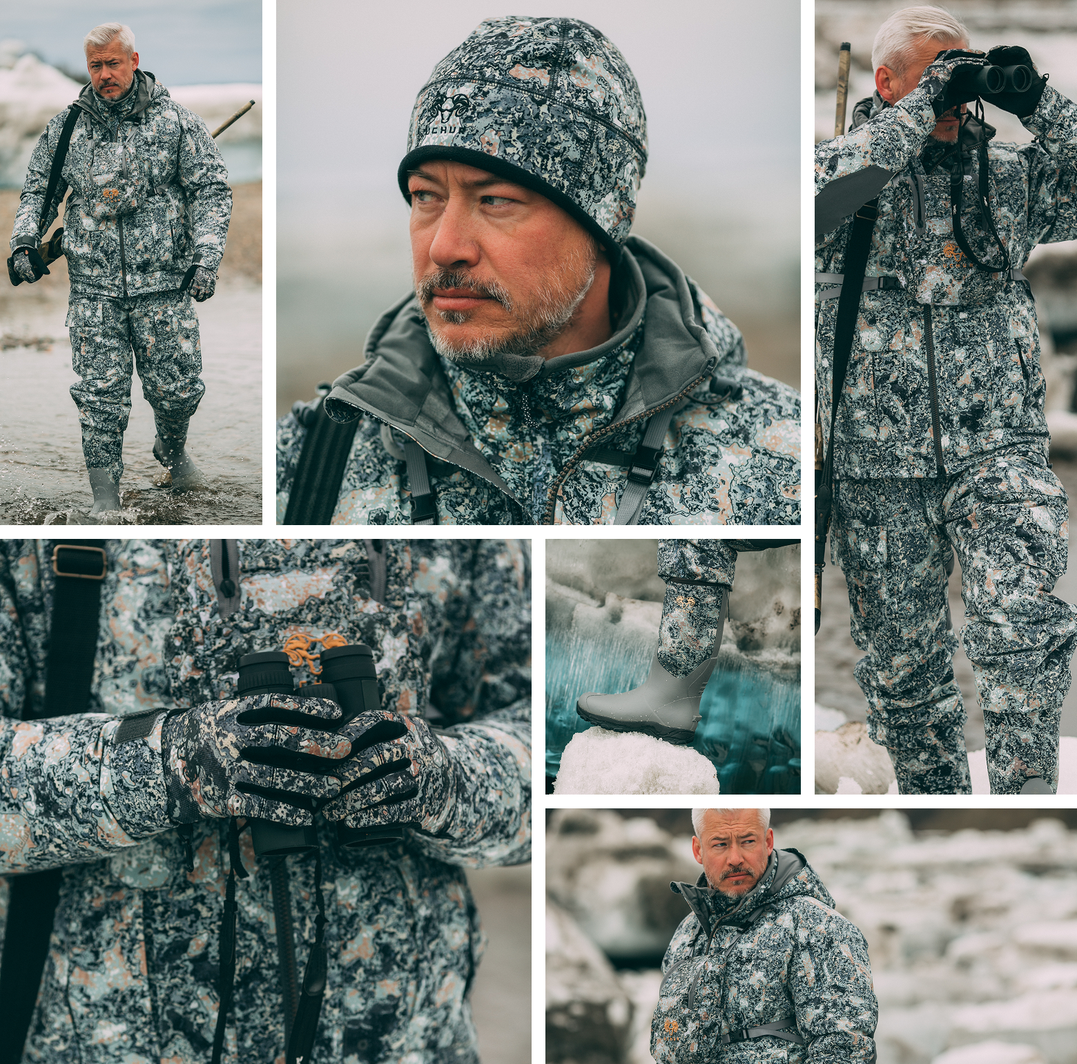 Вдохновленная уникальными горными массивами Якутии, расцветка TAAS разработана так, чтобы идеально вписываться в местный рельеф. Её текстура и цветовая палитра повторяют оттенки камней, травы, воды и снега, делая вас практически невидимым для животных. Летом она органично сочетается с водной поверхностью рек и озёр, а зимой становится частью белоснежного покрова, сохраняя вашу маскировку в любое время года.
