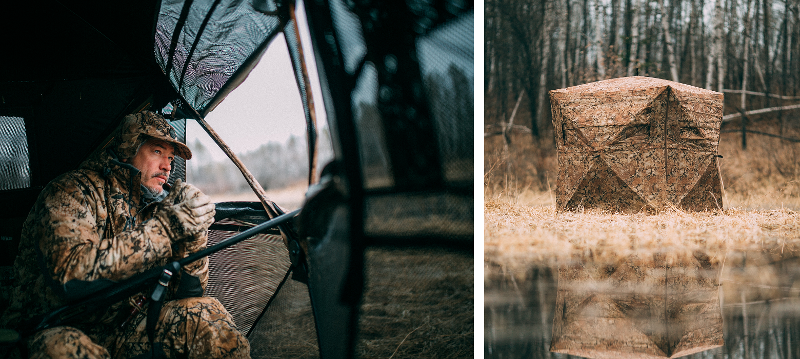 Удобные и незаметные, защищают от ветра и дождя, позволяют охотнику комфортно ждать дичь.