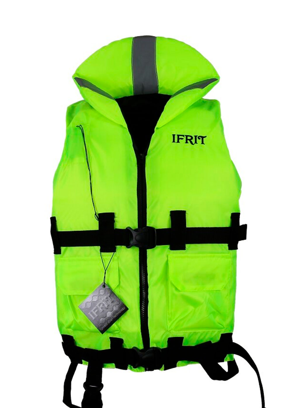 Спасательный жилет для взрослых «Ifrit-110» - может удерживать на плаву массу до 110 кг. (либо 1100 ньютонов). Жилет выполнен в ярком цвете лайм, который хорошо заметен на большой дистанции.