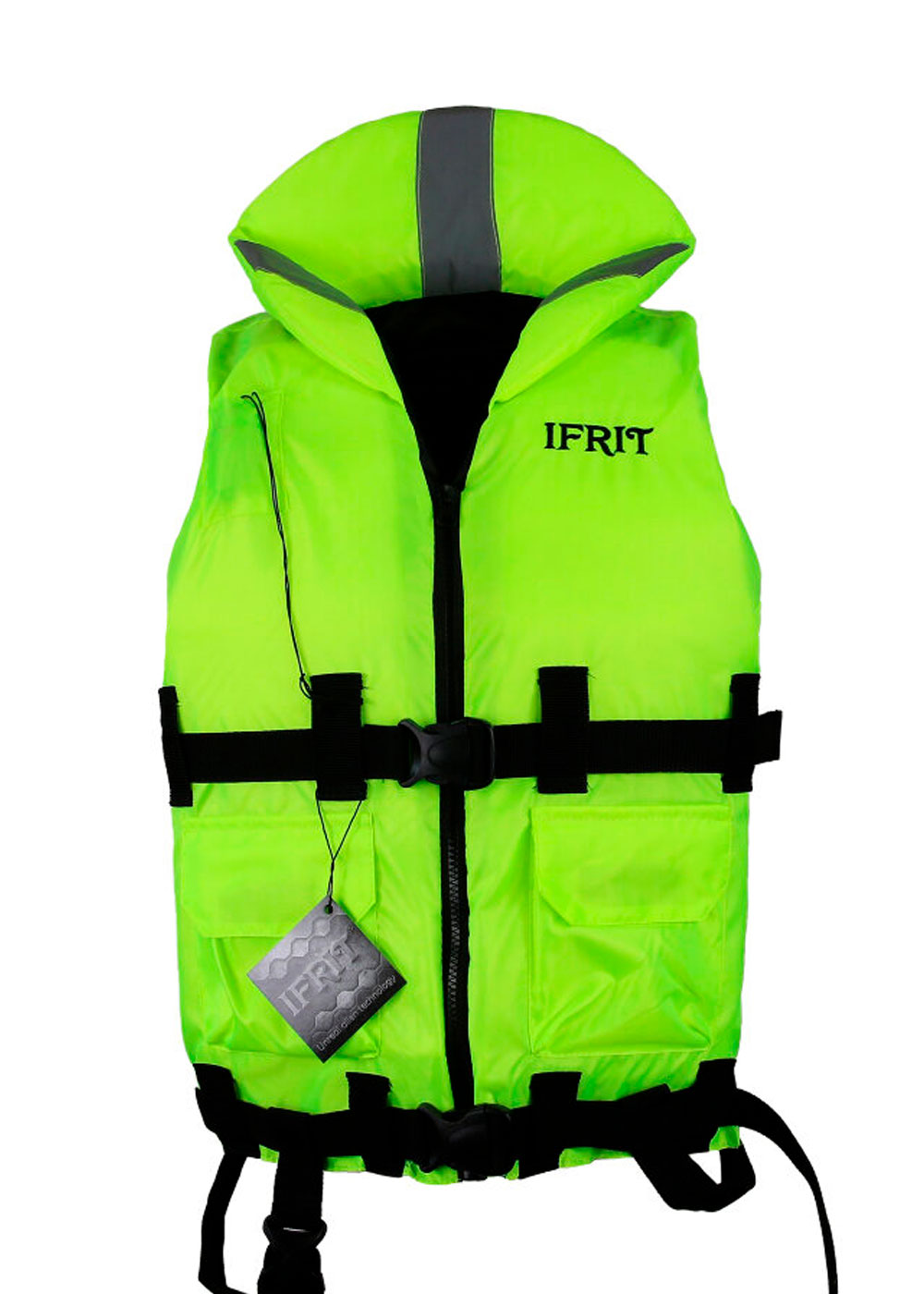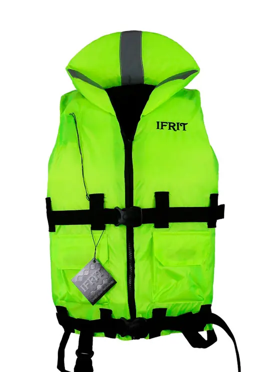 Спасательный жилет для взрослых «Ifrit-130» - может удерживать на плаву массу до 130 кг. (либо 1300 ньютонов). Жилет выполнен в ярком цвете лайм, который хорошо заметен на большой дистанции.