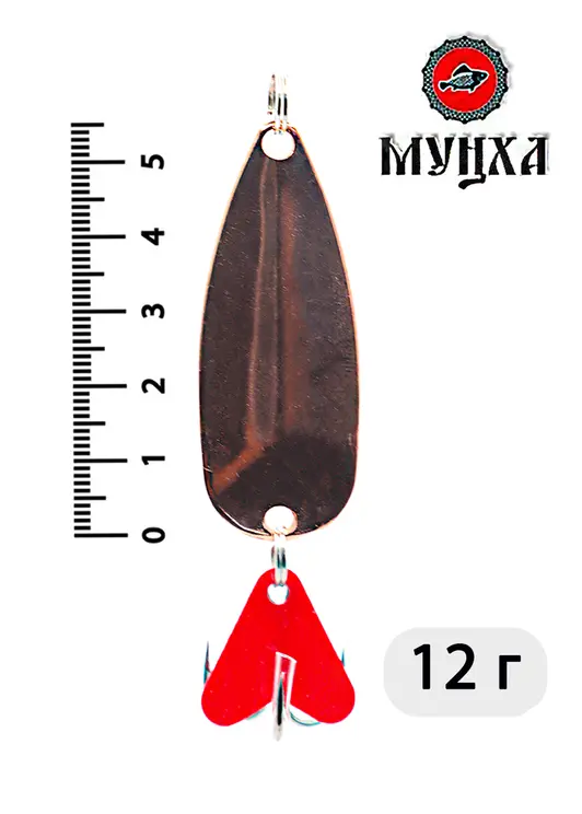 Колеблющаяся блесна «Мунха» размера 05# весом 12 грамм в медном исполнении — эффективная приманка для ловли хищной рыбы. Медное покрытие создаёт характерные блики в воде, привлекающие внимание хищника даже в мутной воде. Оптимальный вес и размер обеспечивают стабильную игру при любой скорости проводки.