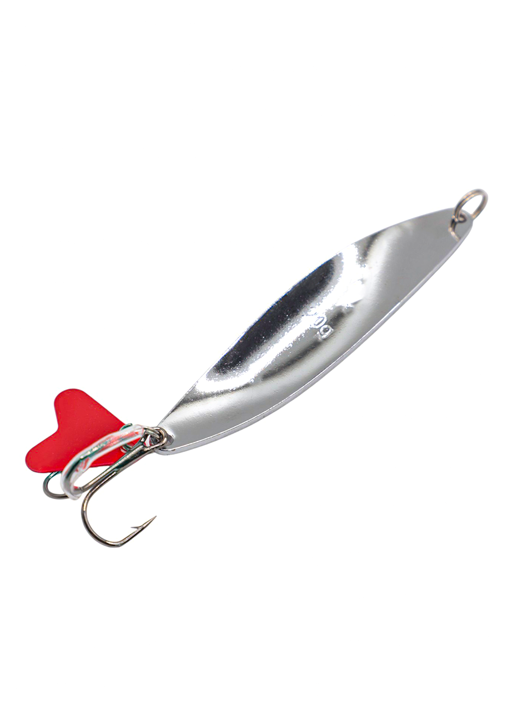 Приманка изготовлена из качественного металла с надёжным защитным покрытием, которое обеспечивает защиту от коррозии и механических повреждений. Сочетание серебристого цвета с особой приманковой отделкой делает блесну особенно заметной в воде при любой освещённости, эффективно привлекая внимание хищника с дальнего расстояния.