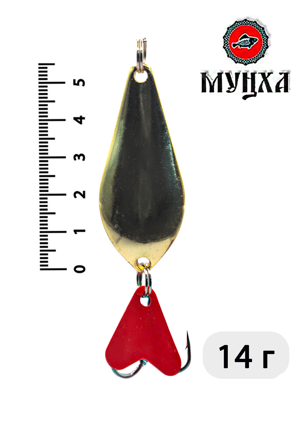 Колеблющаяся блесна Мунха модели 49# весом 15 грамм в золотистом (Go) исполнении — эффективная приманка для ловли хищных рыб в различных условиях рыбалки. Оптимальный вес позволяет успешно применять блесну как на мелководных участках, так и на умеренном течении.