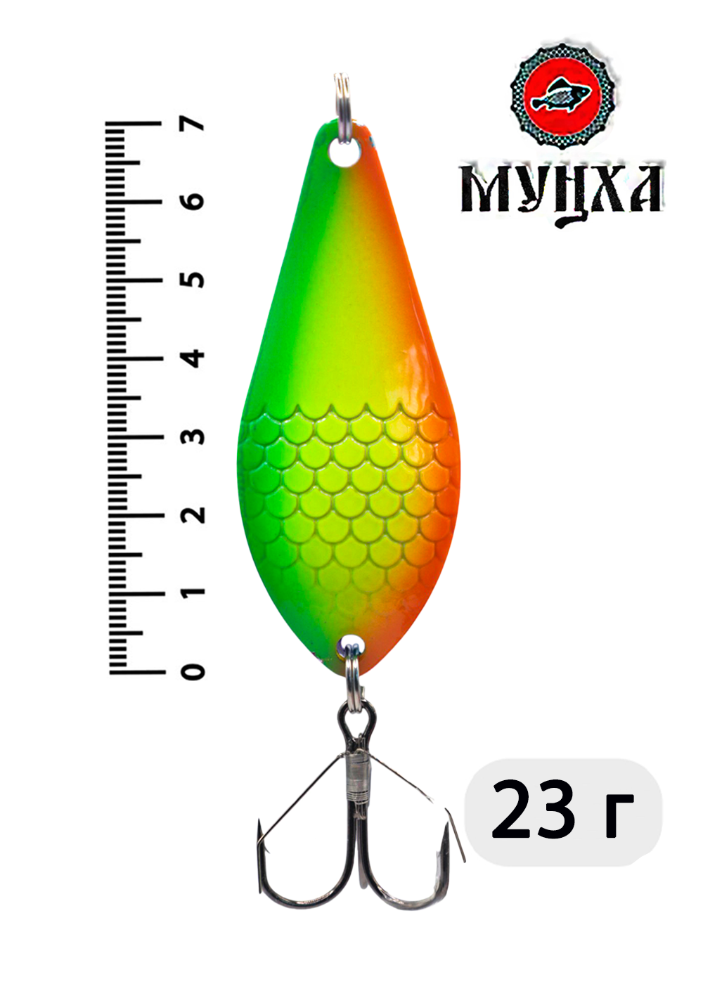 Колеблющаяся шумовая блесна Мунха модели SDP1209 весом 23 грамма в флуоресцентно-серебристом (Fluo/Sil) исполнении — специализированная приманка для ловли хищных рыб в различных условиях рыбалки. Особенность данной модели заключается в наличии специального шумового эффекта, привлекающего рыбу с дальнего расстояния.
