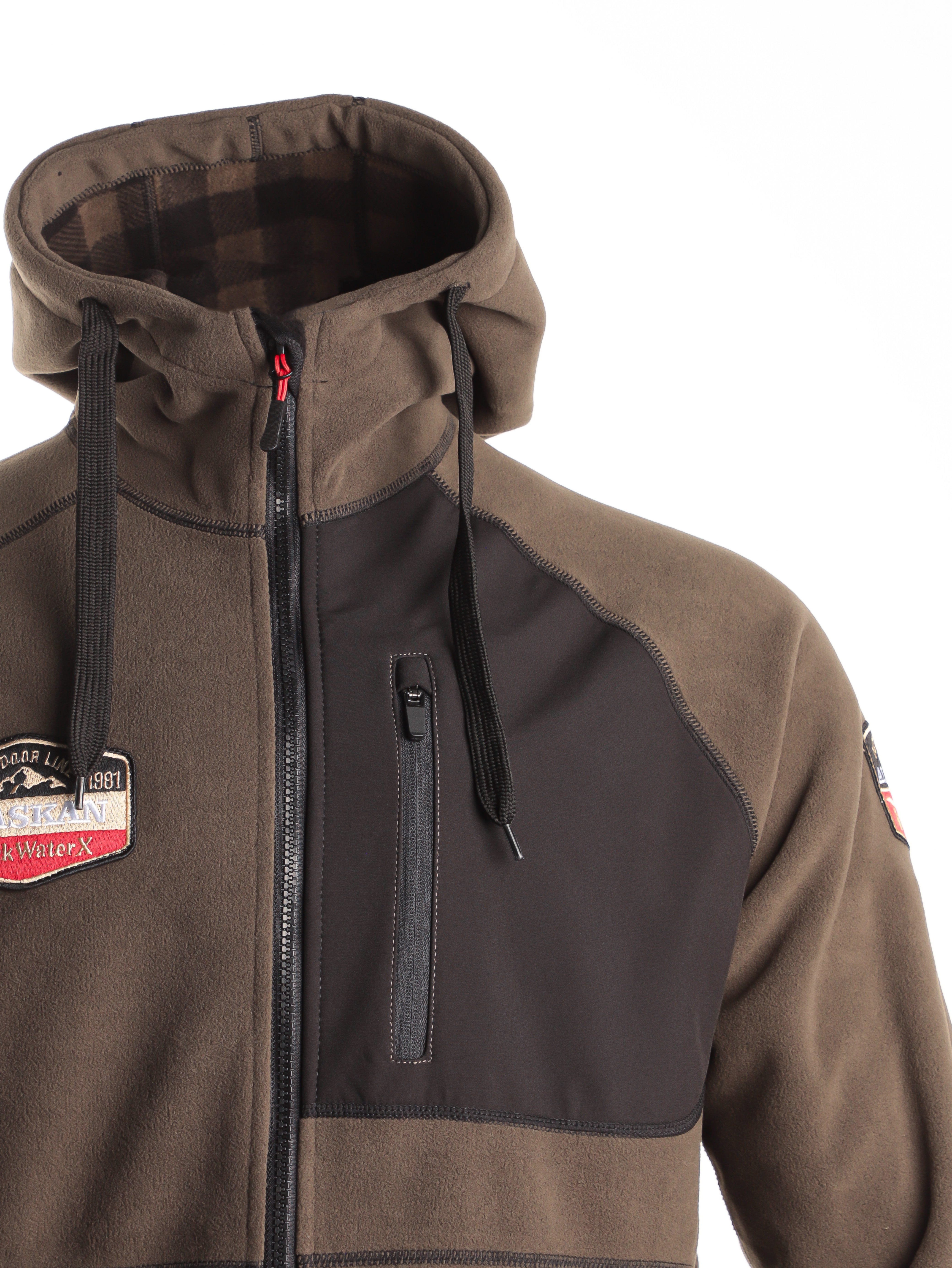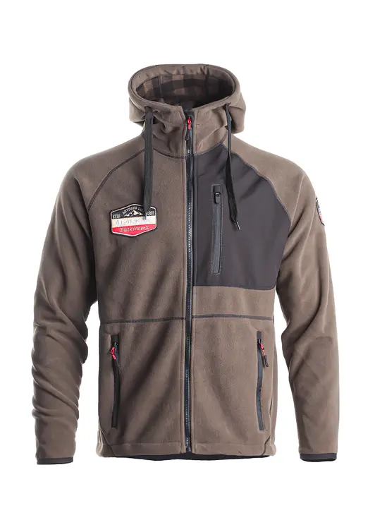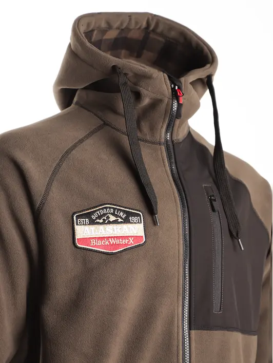 Куртка флисовая Alaskan Black Water X хаки с капюшоном (размер M) — это отличный выбор для рыбалки, охоты, отдыха и занятий активными видами спорта в любое время года. Куртка изготовлена из двухстороннего (Double Face) поларфлиса, что обеспечивает высокую теплозащиту и гигроскопичность. Куртка имеет сложный анатомический крой, который обеспечивает идеальную посадку и свободу движений. Удобная центральная молния для легкого надевания и снятия. Один большой нагрудный и два боковых кармана для хранения необходимых мелочей. Капюшон и низ куртки оснащены кулисками, что позволяет регулировать объем и обеспечивает дополнительную защиту от ветра и осадков. Левый рукав и правая полочка декорированы цветными нашивками, что придает куртке стильный вид. Подходит для использования в любое время года благодаря своей теплозащите и гигроскопичности.