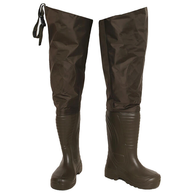 Облегченная модель сапог, выполненная на основе материала ЭВА с голенищем из водоотталкивающего нейлона. Модель оснащена фиксирующим ремешком для регулировки высоты под рост человека.