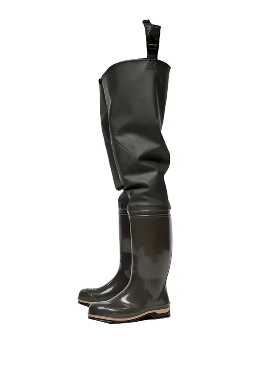 Классическая модель рыбацких сапог. Плотная рифленая подошва. Текстильный верх из водонепроницаемой ПВХ-ткани (винитол) крепится к базовому сапогу на современном итальянском оборудовании при помощи сварки током высокой частоты. 100% водонепроницаемость. Дополнительно применяется технология двойного шва, которая придает обуви еще большую прочность, износостойкость и герметичность.