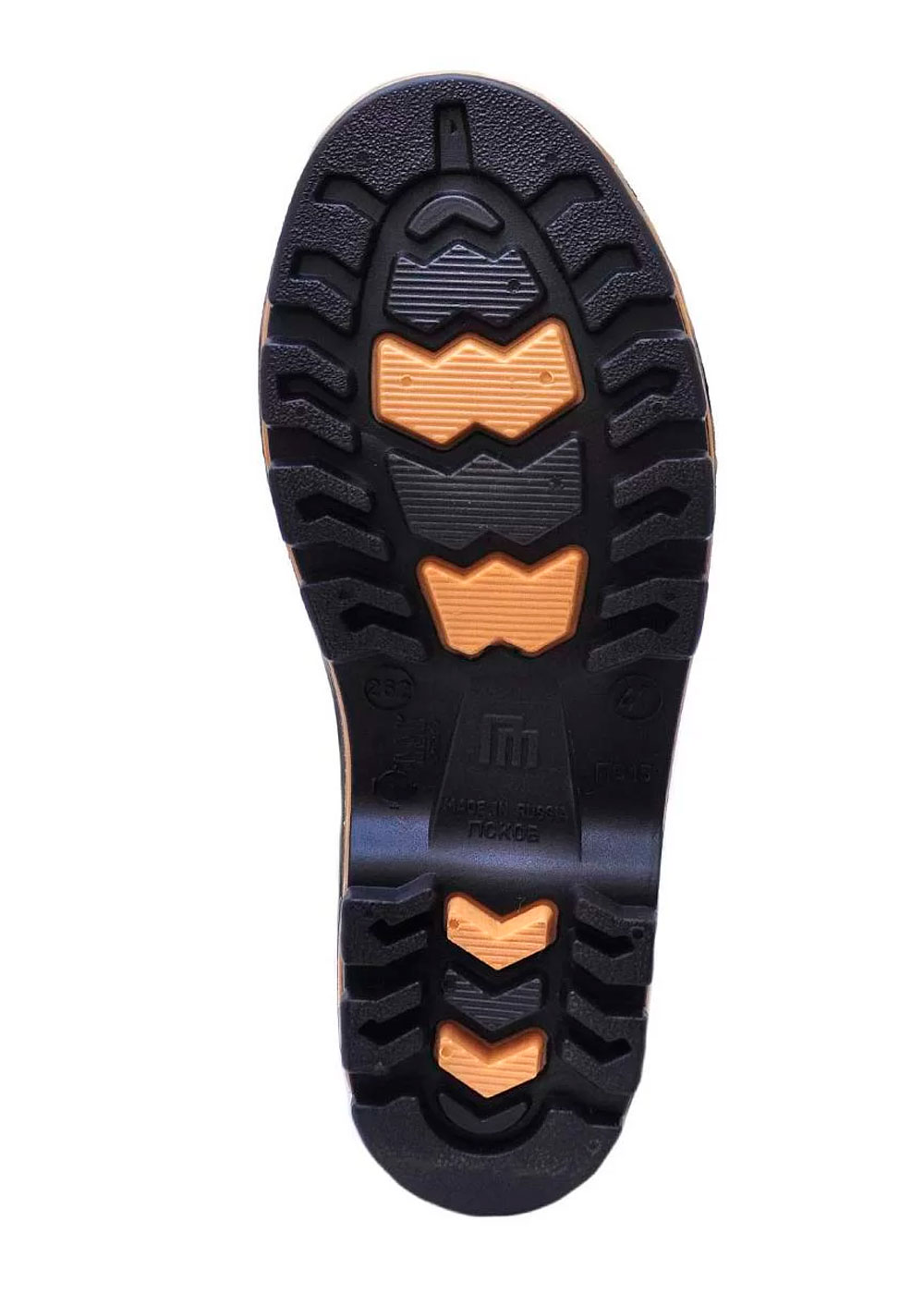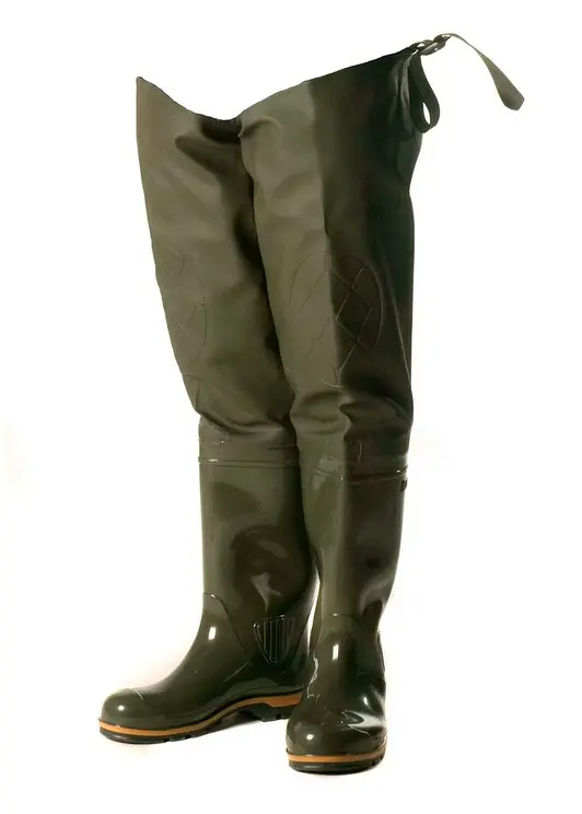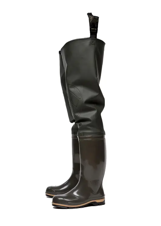 Классическая модель рыбацких сапог. Плотная рифленая подошва. Текстильный верх из водонепроницаемой ПВХ-ткани (винитол) крепится к базовому сапогу на современном итальянском оборудовании при помощи сварки током высокой частоты. 100% водонепроницаемость. Дополнительно применяется технология двойного шва, которая придает обуви еще большую прочность, износостойкость и герметичность.