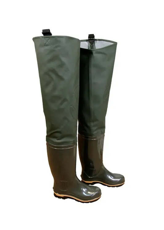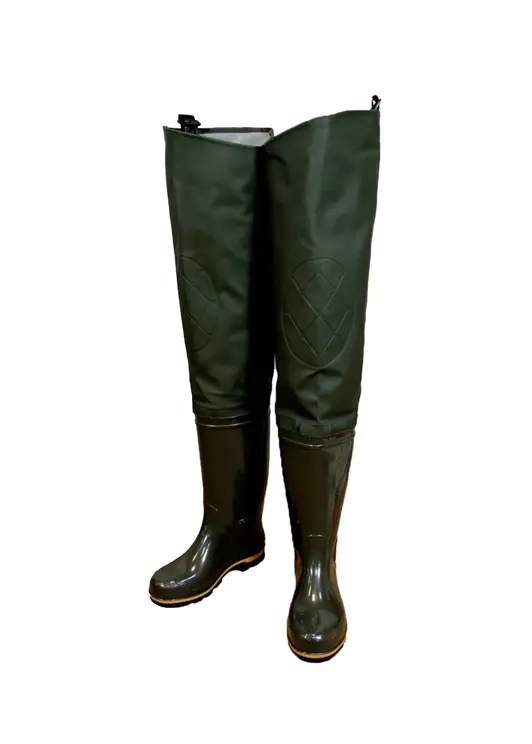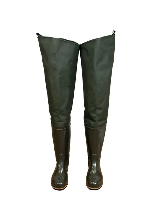 Классическая модель рыбацких сапог. Плотная рифленая подошва. Текстильный верх из водонепроницаемой ПВХ-ткани (винитол) крепится к базовому сапогу на современном итальянском оборудовании при помощи сварки током высокой частоты. 100% водонепроницаемость. Дополнительно применяется технология двойного шва, которая придает обуви еще большую прочность, износостойкость и герметичность.