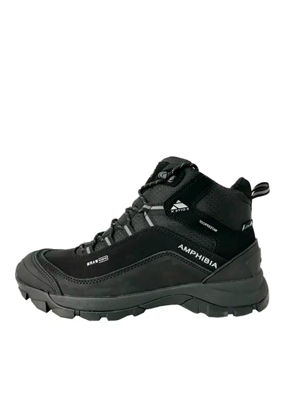 Зимние ботинки EDITEX AMPHIBIA W682-01N чёрного цвета — утеплённая треккинговая модель для активного использования при температурах до -20°C, выполненная из комбинации износостойкого материала BEPROTECK с боковыми вставками из натурального нубука. Оснащены мембраной WWB для полной водонепроницаемости и термозащиты, съёмной антибактериальной стелькой Ortholite с влагоотводящими свойствами и промежуточной подошвой EVA для амортизации. Конструкция усилена резиновыми накладками в области носка и пятки, подошва USP с агрессивным протектором обеспечивает надёжное сцепление с поверхностью. Прочная двойная шнуровка гарантирует надёжную фиксацию стопы при ходьбе по пересечённой местности.