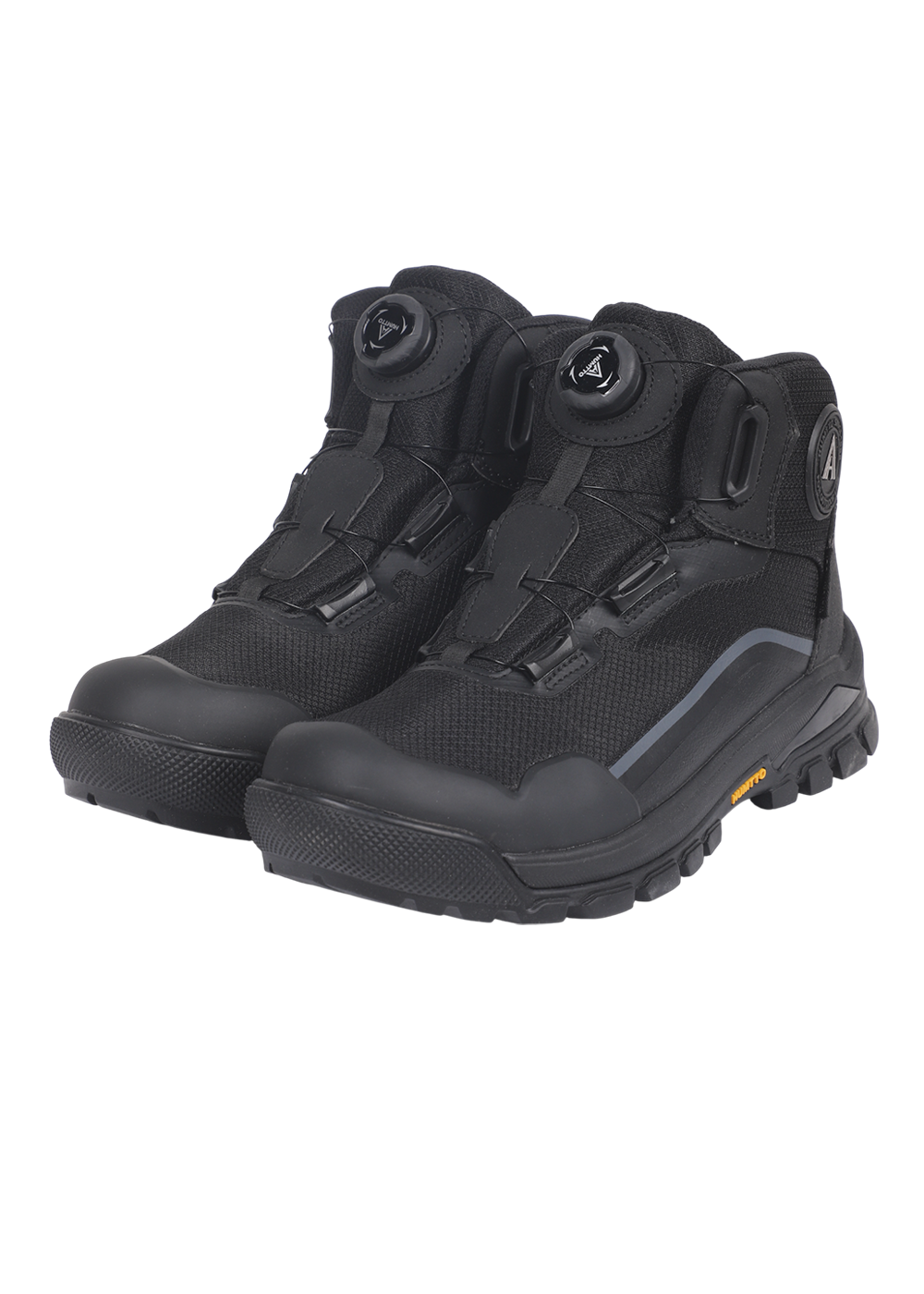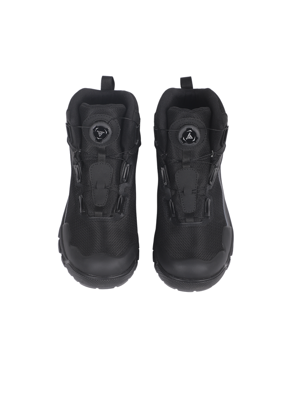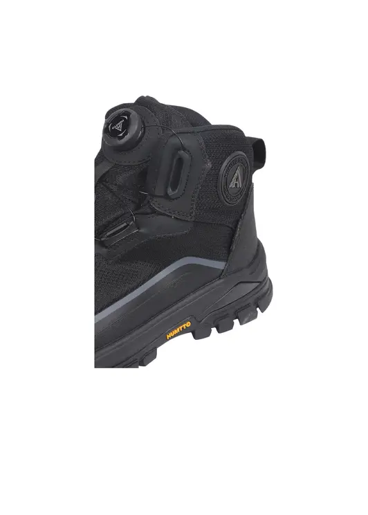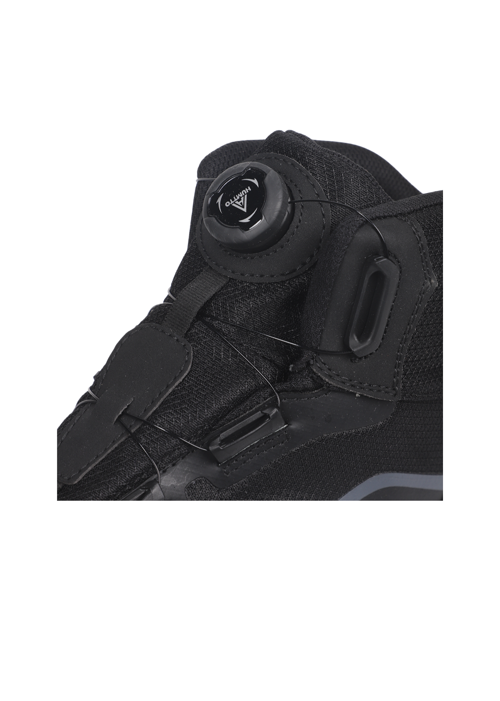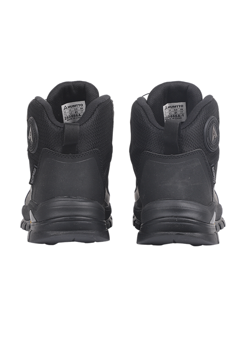 Мужские треккинговые ботинки Humtto 260866A-1 черного цвета — современная модель для активного использования в походах и городской среде. Прочный верх выполнен из комбинации технологичного текстиля и синтетических материалов с накладками TPU, обеспечивающими защиту от повреждений. Особая гордость модели — инновационная система боковой шнуровки с поворотным механизмом для быстрой и надежной фиксации. Мембрана HUMTTO-TEX гарантирует защиту от влаги при сохранении воздухопроницаемости. Многослойная подошва с амортизирующим слоем EVA и агрессивным протектором обеспечивает отличное сцепление с различными поверхностями. Усиленный мысок и жесткий задник защищают стопу, а анатомический кант и глухой язычок повышают комфорт при носке