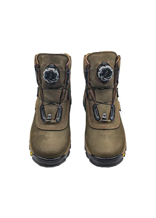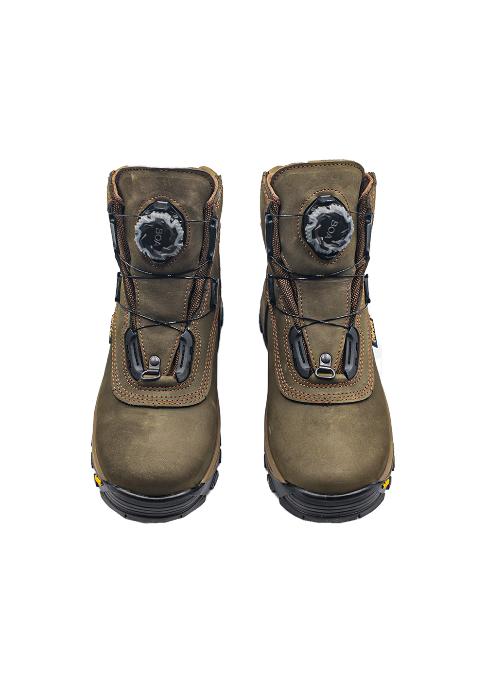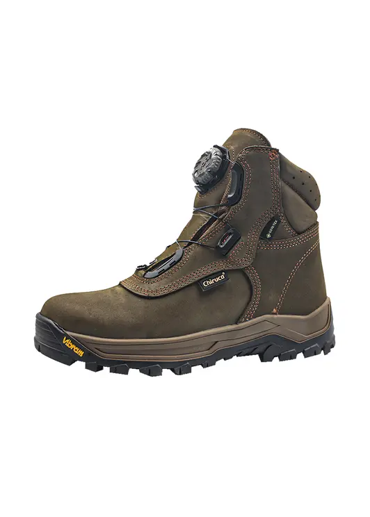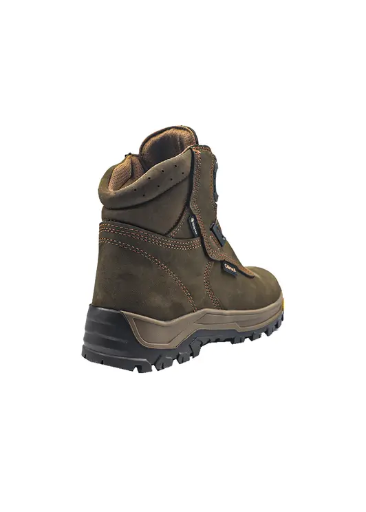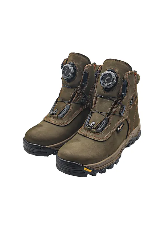 Ботинки Chiruca Cares BOA Bandeleta - высокотехнологичные ботинки для охоты, изготовленные из водоотталкивающей кожи спилок и прочной ткани Cordura с использованием мембранного слоя Gore-Tex Performance Comfort снабжены специальной системы шнуровки с автоматическим способом застегивания и расстегивания BOA. Обладают небольшой высотой прочной подошвой Vibram (не скользит) с оригинальным протектором. Специальный дизайн кроя с минимальным количеством швов и усилениями на пятке и по всей окружности на 3 см вверх от подошвы. Для свободы движений сустава ноги верх сделан из мягкого текстиля. Спереди перед шнуровкой металлическая петля для фиксации гетров Chiruca. Внутри стелька для амортизации и отвода лишней влаги.
