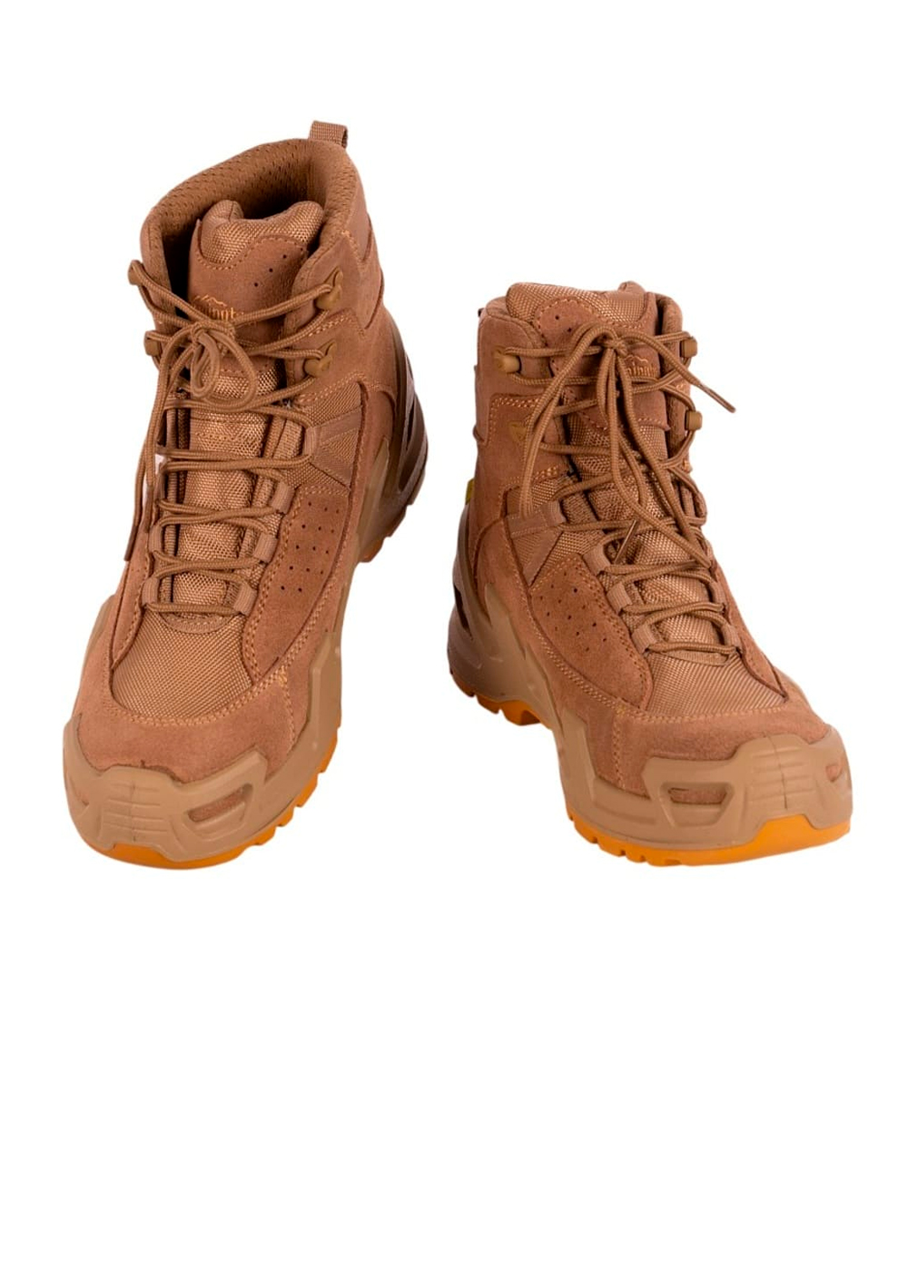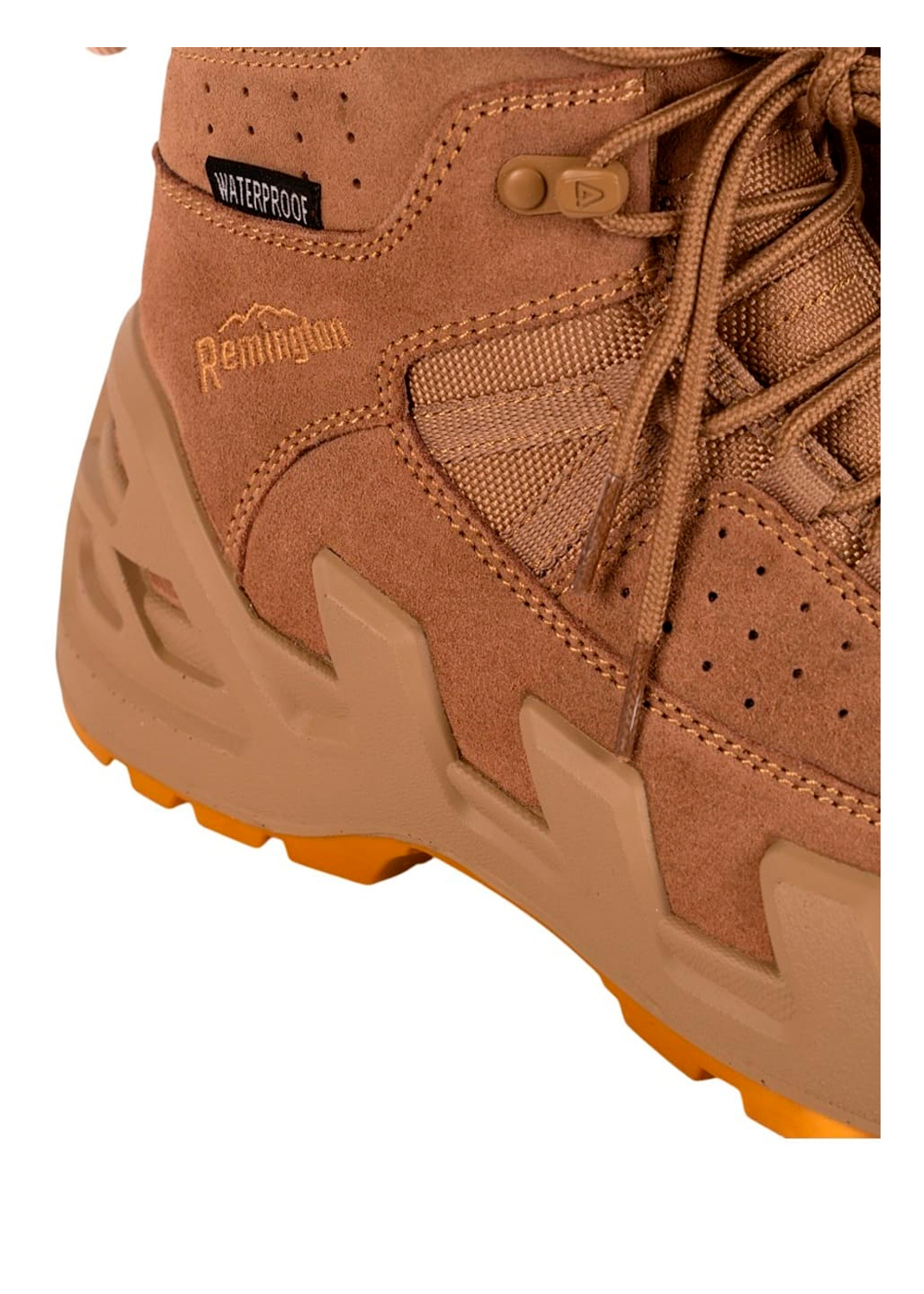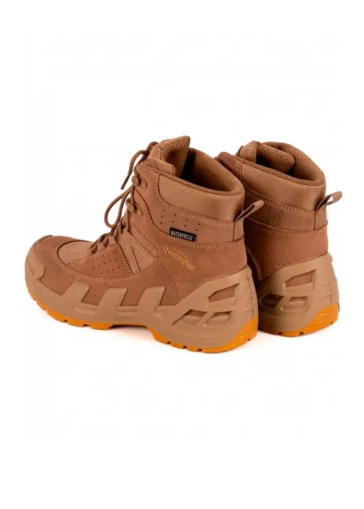 Ботинки Remington Boots Military Style Canyon предназначены как для походов, активного отдыха, так и для профессионального использования во время тактических заданий. Модель с увеличенным подъемом и высокой шнуровкой, что обеспечивает надежную фиксацию на ноге. Подошва ботинок изготовлена из легкого полиуретана (PU), который также защищает боковые части от механических повреждений. Также на подошве есть накладка из резины, которая предотвращает истирание и обеспечивает надежное сцепление с поверхностью. Ботинки Remington Boots Military Style Canyon - надежный выбор как для любителей, так для профессионалов.