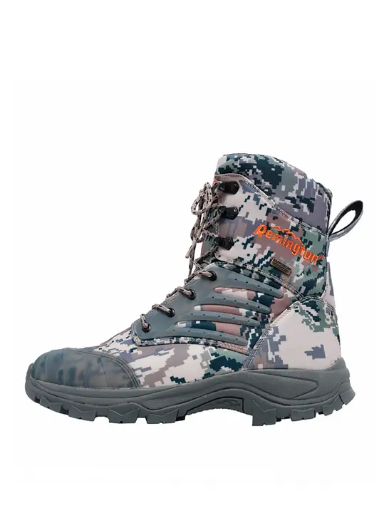 Треккинговые ботинки Remington Shadow Trek Figure — универсальная модель для охоты и активного отдыха в демисезонный период при температуре от -5°C до +10°C. Выполнены из прочного полиэстера с усиленными вставками из термопластичного полиуретана (TPU), обеспечивающими защиту от механических повреждений. Оснащены водонепроницаемой мембраной WaterProof для защиты от влаги. Подошва комбинированная: верхний слой из легкого ЭВА материала с теплоизоляционными свойствами и амортизацией, нижний — из усиленной резины с высоким протектором для надежного сцепления с поверхностью. Камуфляжный дизайн придает схожесть с тактической обувью, а надежная шнуровка обеспечивает плотную фиксацию на ноге.