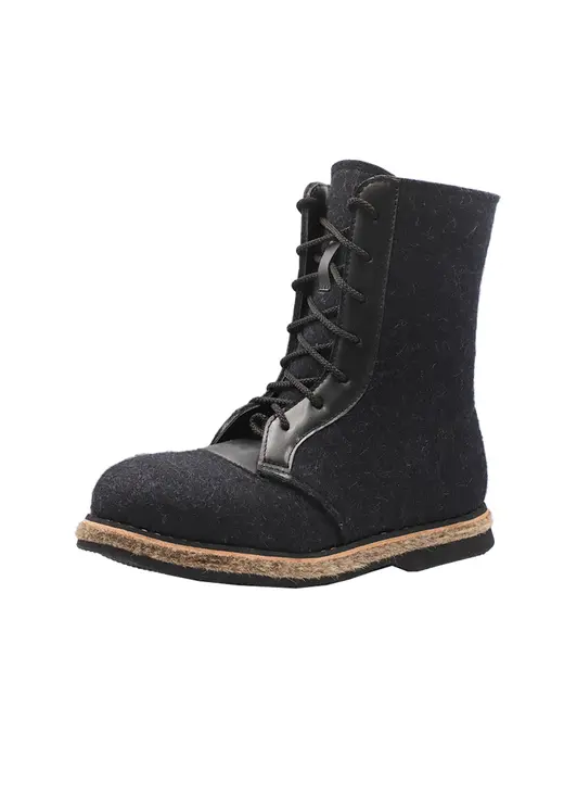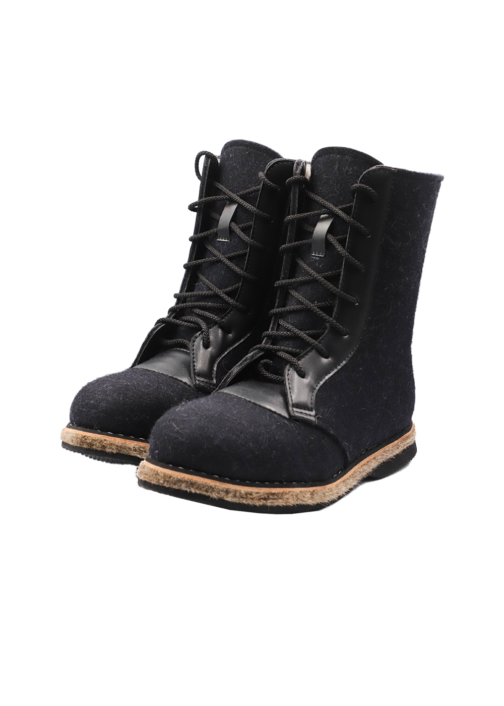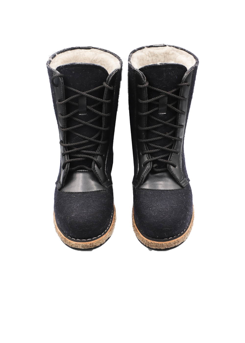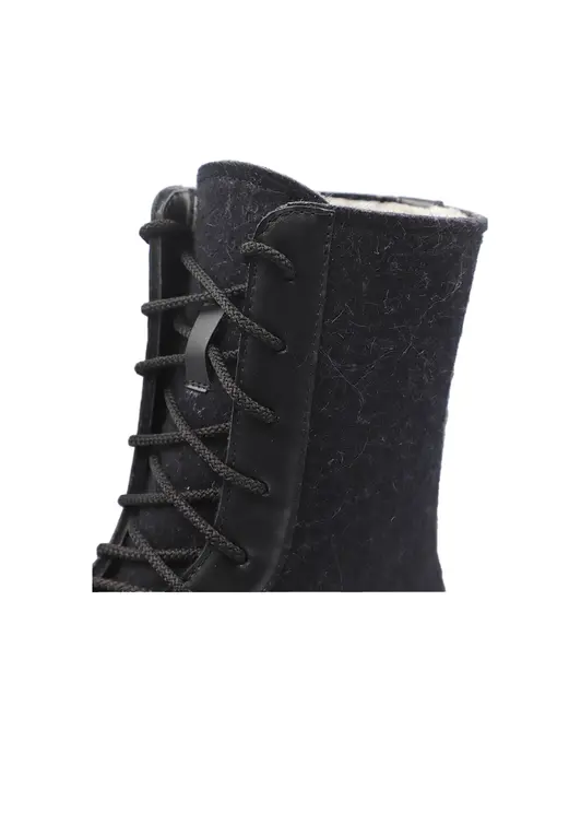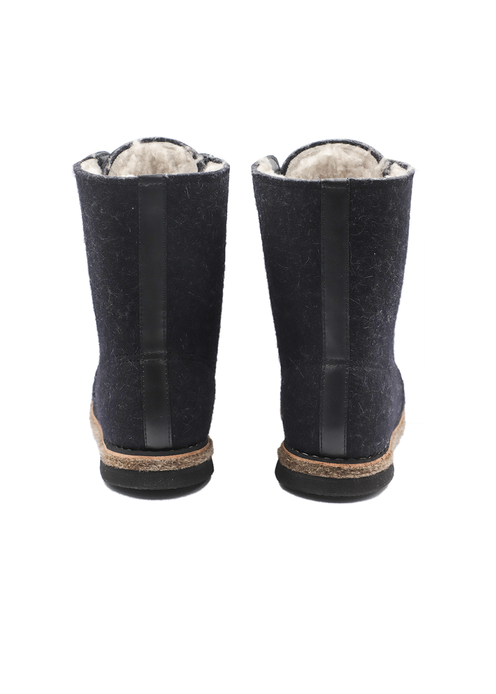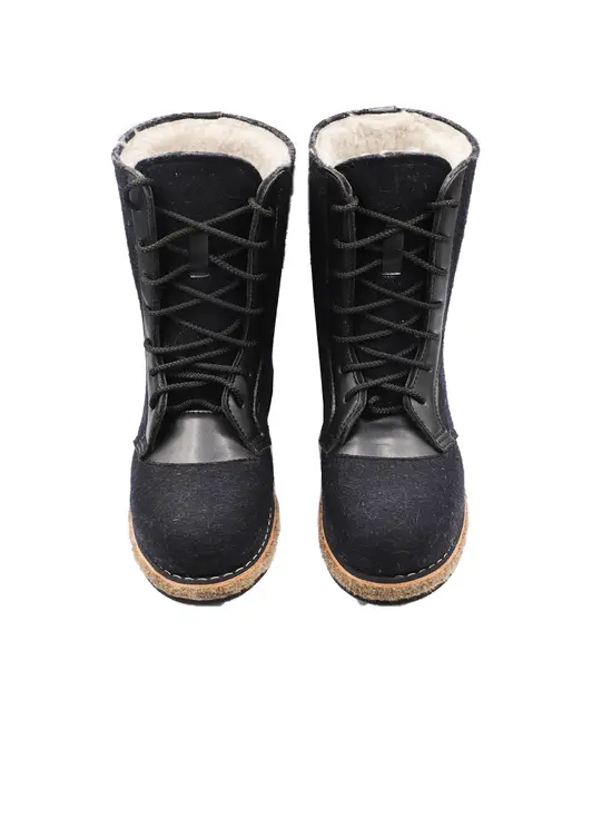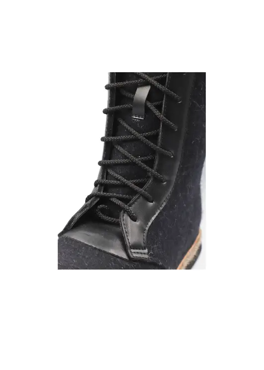 Удобные, легкие,теплые. Натуральный обувной войлок. Мех под овчину с содержанием шерсти 70%. Кожа в области шнурка исключает вырывание войлока. Войлочная подошва. Низ из морозостойкой ЭВА (этиленвинилацетат), представляющий собой высокоэффективный вспененный каучук. Этот композиционный полимерный материал относится к полиолефинам, отличается легкостью, отличными амортизирующими свойствами и высоким уровнем экологической безопасности.