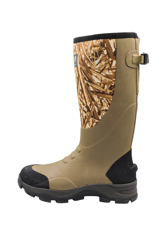 Сапоги Duck Mania модель 801 в цвете NW1 — это высокопрочная обувь, изготовленная по технологии ручной склейки из натурального каучука (до 70%) с неопреновым утеплителем. Конструкция включает амортизирующую подложку из ЭВА, спортивную колодку Active Fit для комфортного ношения и устойчивости при ходьбе, а также регулируемый манжет для надежной фиксации. Сапоги оснащены специальной системой отвода влаги, которая сохраняет ноги в сухости и тепле, имеют камуфлированную отделку и подошву с неглубоким протектором для надежного сцепления на сложной местности. Температурный режим эксплуатации составляет от 0°C до -15°C, что делает их подходящими для использования в демисезонный период и зимой.