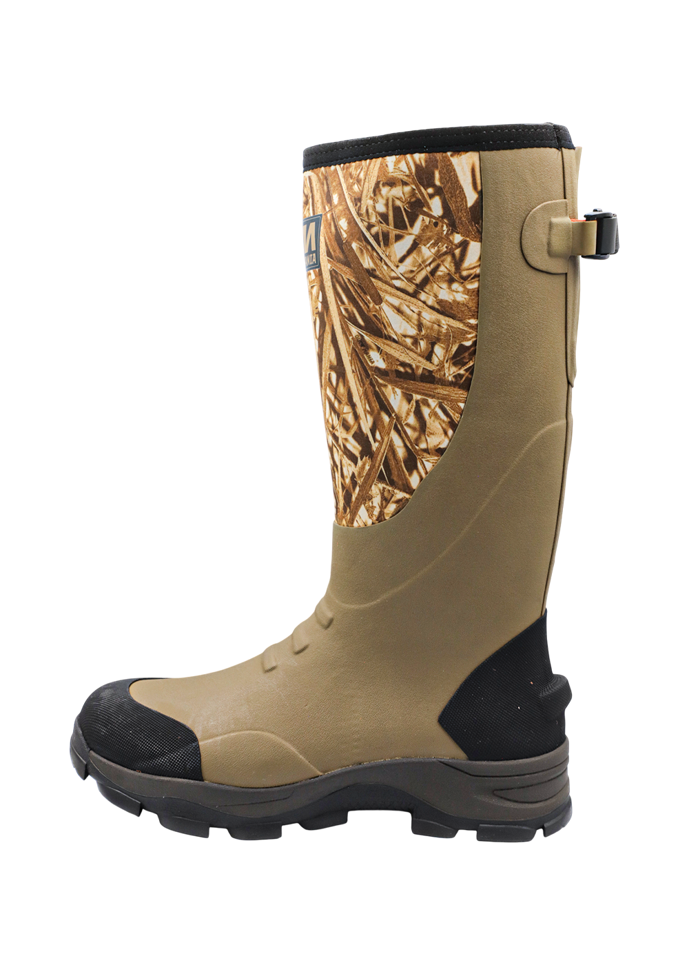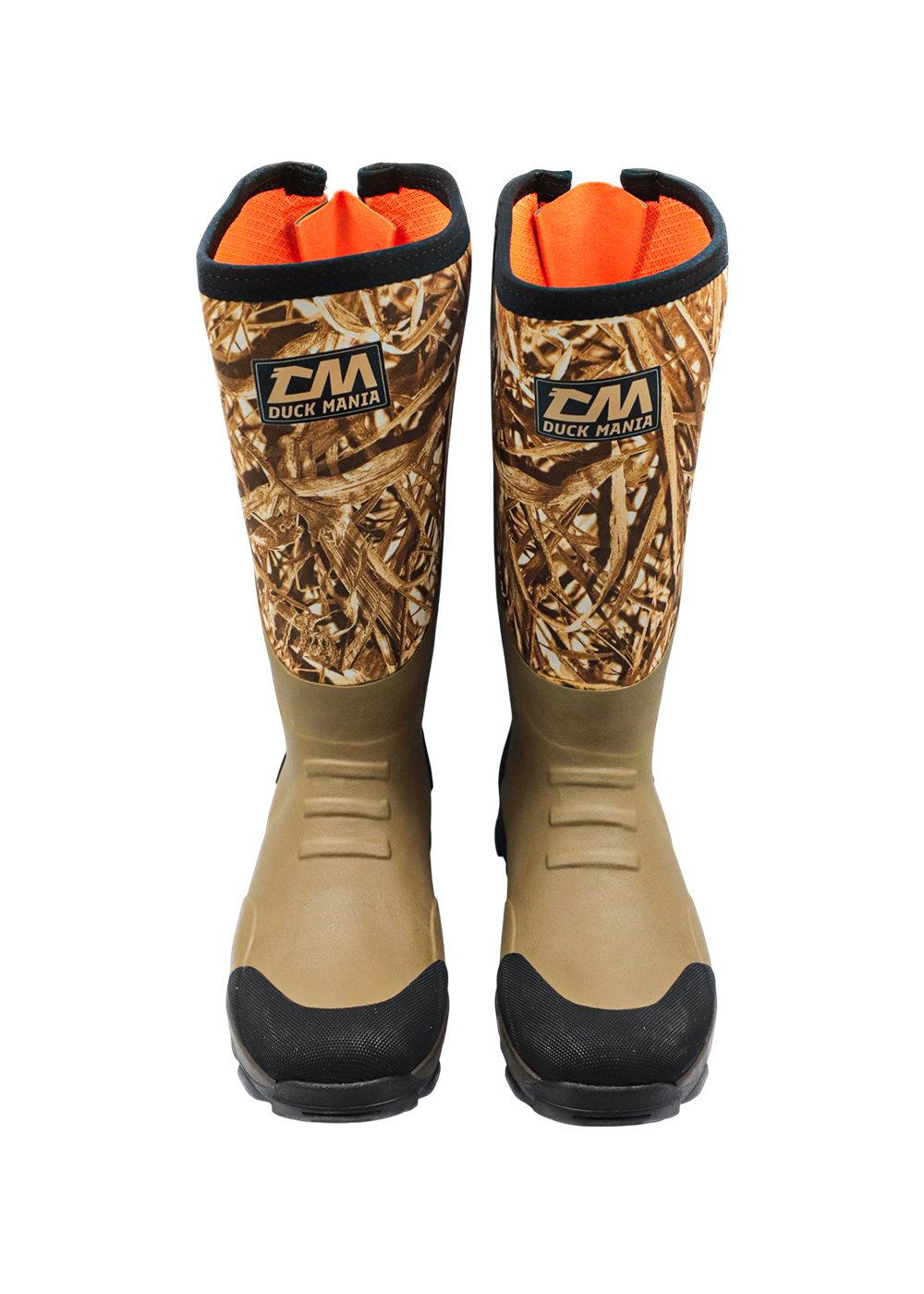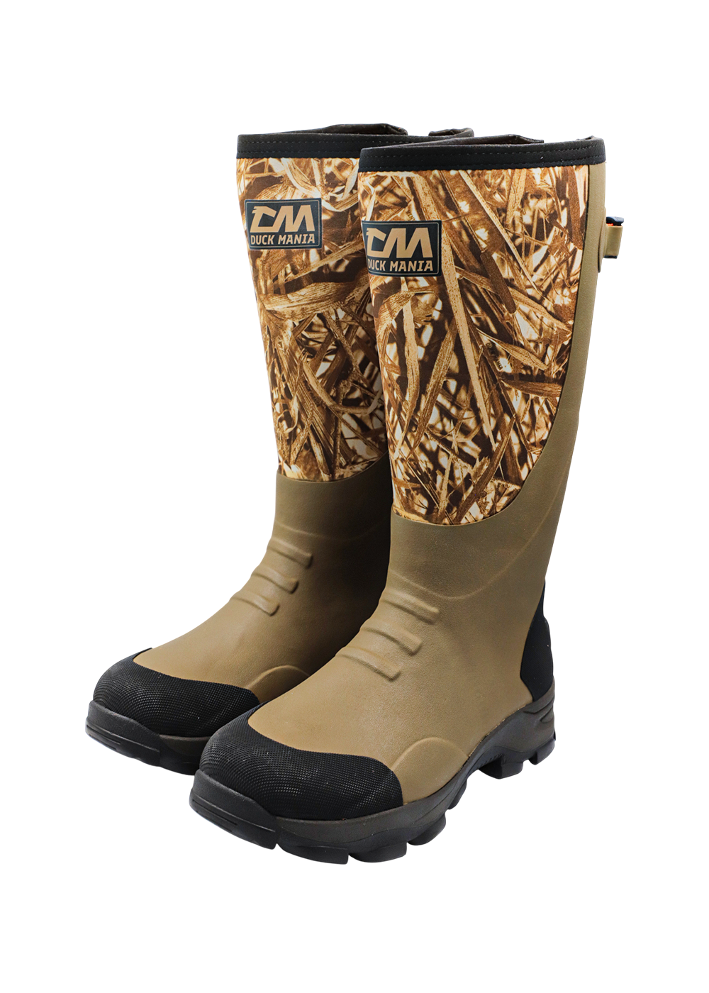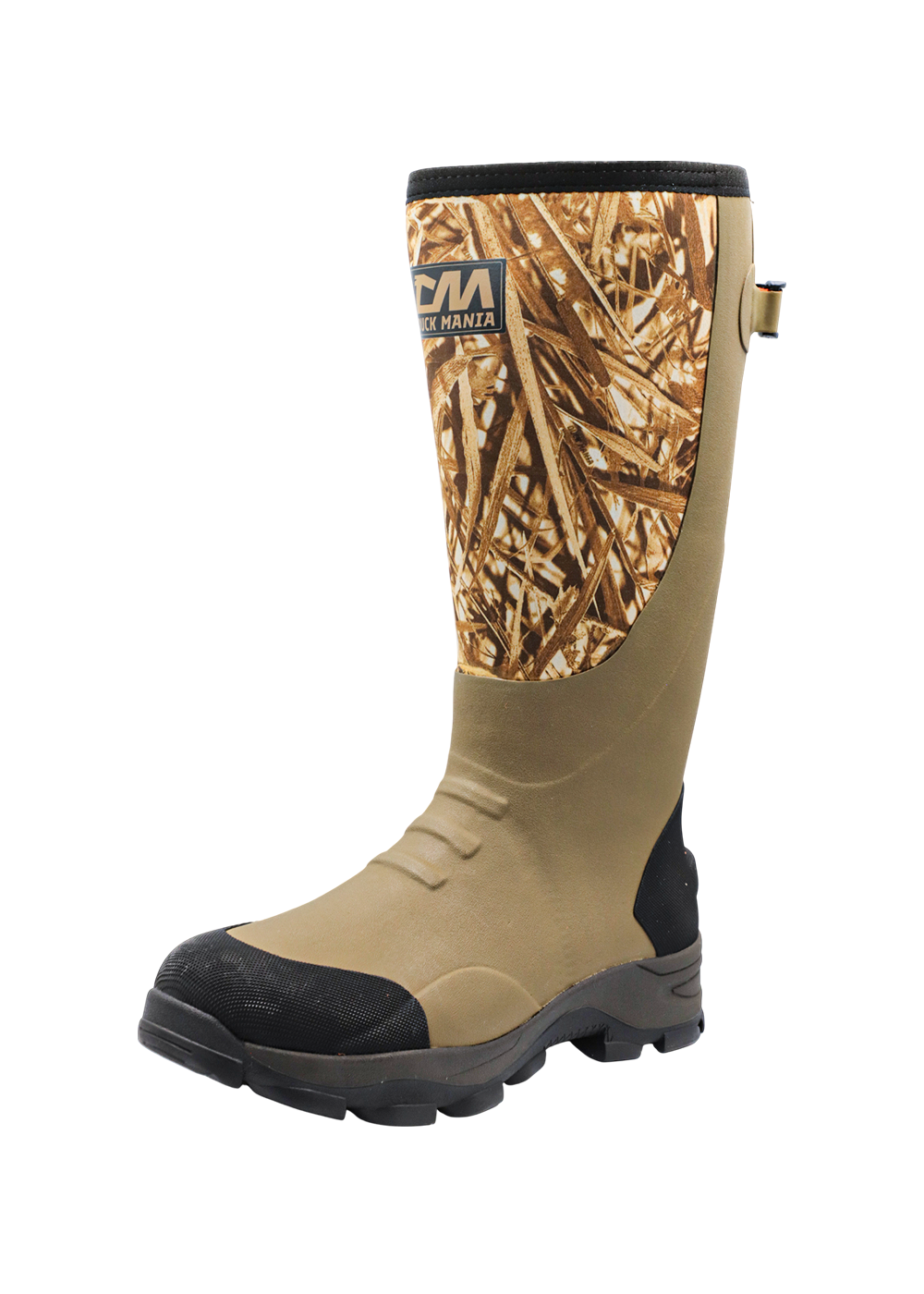 Сапоги Duck Mania модель 801 в цвете NW1 — это высокопрочная обувь, изготовленная по технологии ручной склейки из натурального каучука (до 70%) с неопреновым утеплителем. Конструкция включает амортизирующую подложку из ЭВА, спортивную колодку Active Fit для комфортного ношения и устойчивости при ходьбе, а также регулируемый манжет для надежной фиксации. Сапоги оснащены специальной системой отвода влаги, которая сохраняет ноги в сухости и тепле, имеют камуфлированную отделку и подошву с неглубоким протектором для надежного сцепления на сложной местности. Температурный режим эксплуатации составляет от 0°C до -15°C, что делает их подходящими для использования в демисезонный период и зимой.