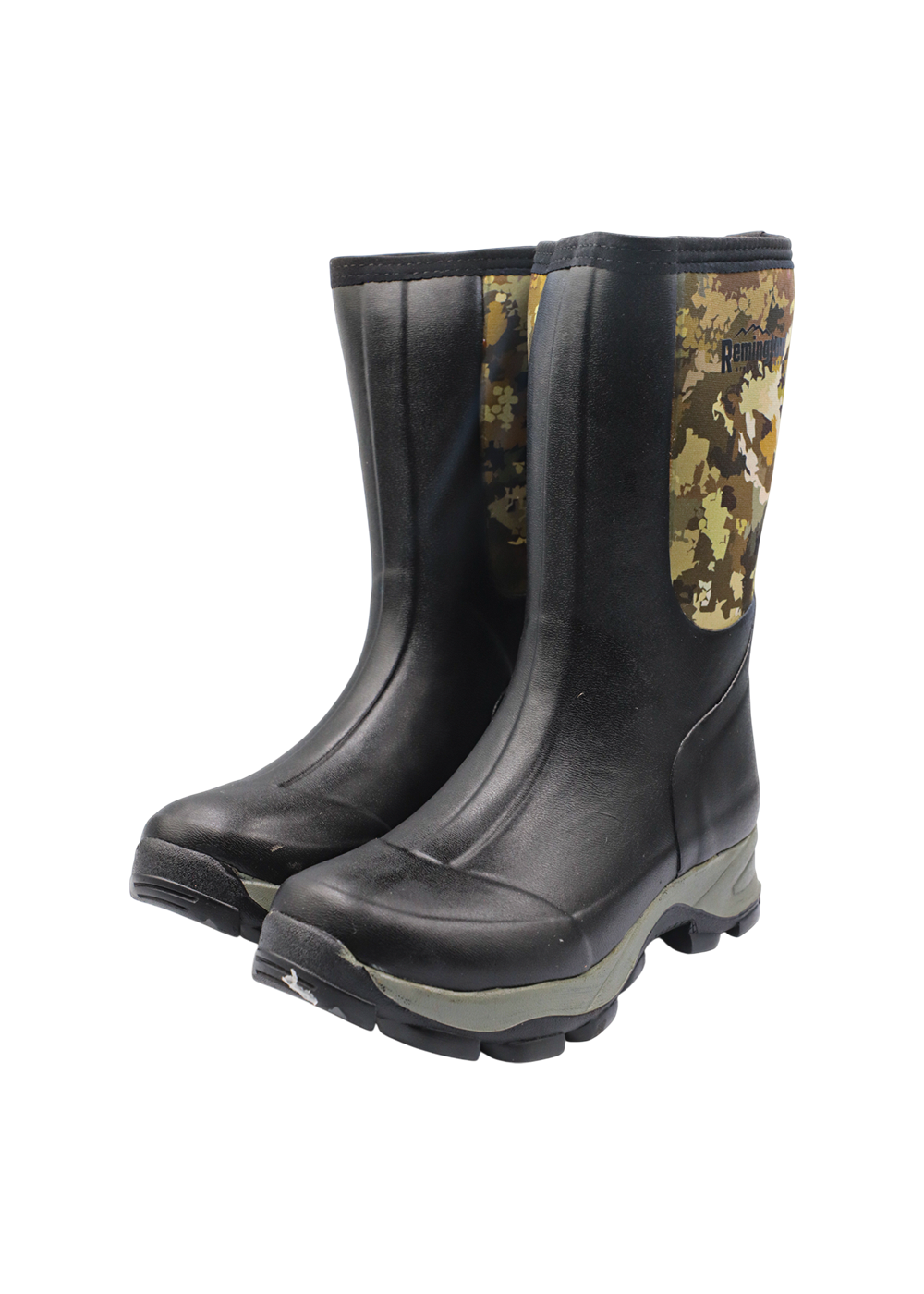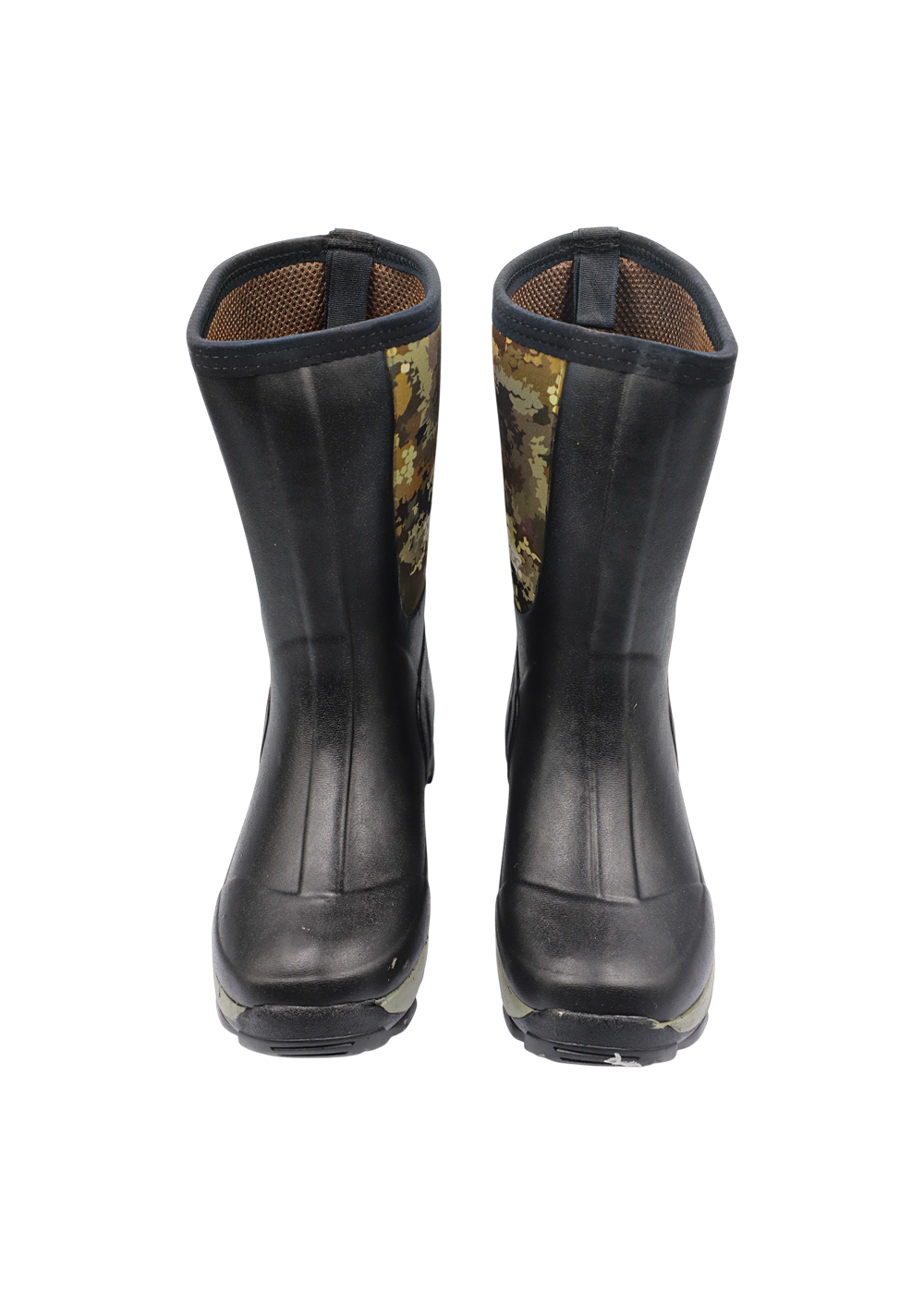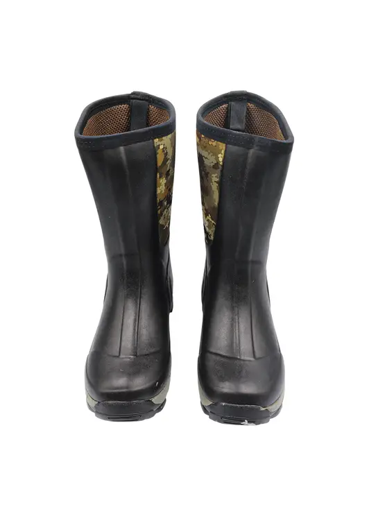 Камуфляжный окрас Timber не только придаёт обуви стильный внешний вид, но и служит дополнительным элементом маскировки во время охоты. Укороченный дизайн модели значительно упрощает процесс надевания, сохраняя при этом все защитные функции полноразмерной обуви.