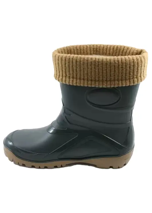 Резиновые сапоги, материал верха - ПВХ. Внутренний слой: съемный носок из овечьей шерсти. Сезон - весна, лето, осень. Пол - девочки/мальчики. Торговая марка - Demar, произведено в Польше.
