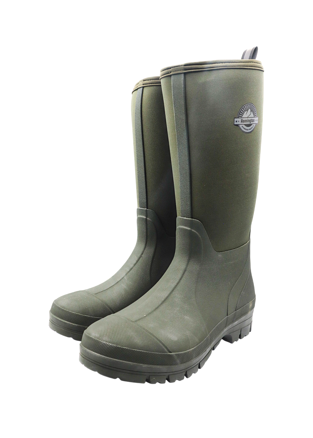 Сапоги Remington Frogger Tall Boots Green — специализированная модель для активного отдыха в весенне-осенний период. Выполнены из многослойной резины с неопреновым слоем 5 мм, обеспечивающим теплоизоляцию и полную защиту от влаги.Конструкция включает прочную резиновую подошву с усиленным протектором для надежного сцепления с мокрым грунтом и стельку из вспененного полиуретана для комфортной амортизации при ходьбе. Зеленый цвет маскировочного оттенка делает сапоги незаметными в природной среде.Модель рассчитана на эксплуатацию при температурах до 0°C, идеально подходит для рыбалки, охоты и туризма в демисезонных условиях.