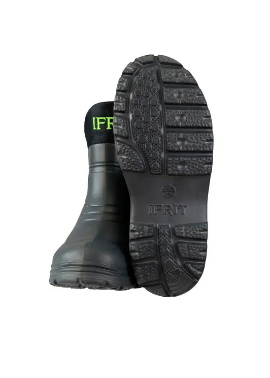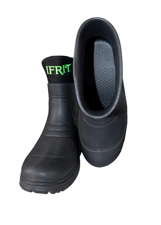 Вспененная структура материала обеспечивает легкость, которую нельзя отметить у резины и иных вариантов. Благодаря малому весу, "Ифрит" очень удобен в эксплуатации при сильной заснеженности и плохих условиях местности. Закрытая ячеистая структура имеет низкую теплопроводность, поэтому она эффективно сохраняет тепло даже в очень сильные морозы. Стоя в ледяной воде в сапогах "Ифрит", человек не почувствует снижение температуры, что повышает комфортность носки и её удобство. Анатомическая форма. Многие изделия характерны тем, что не позволяют ноге принимать удобное и естественное положение. Сапоги "Ифрит", отличаясь от аналогов, обладают высоким подъемом , за счет чего стопа не сдавливается даже при активной эксплуатации. Удобная широкая колодка обеспечивает безболезненную носку,не вызывая судорог и неприятных ощущений. Это крайне важно при выезде в дикую природу, где ценится комфортная и безопасная обувь. Строение подошвы предусматривает наличие специальных ячеек для отвода влаги. Нога всегда будет сухой и, следовательно, не будет мерзнуть при экстремально низких температурах или повышенной влажности воздуха.