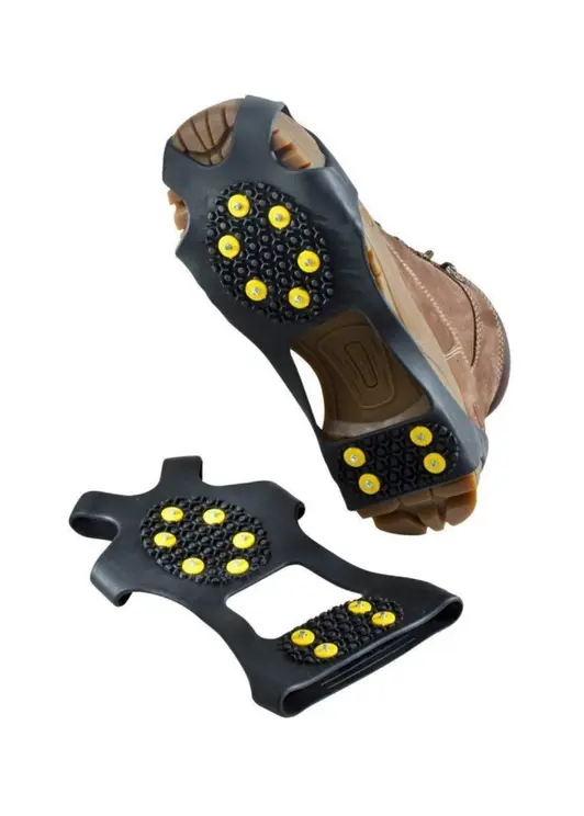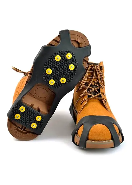 Ледоступы Non-slip snow step & ice cleats представляют собой резиновую подошву с двумя петлями. В основании подошвы размещены 5 шипов, которые сделаны из прочной стали. Шипы надежно прикреплены к резиновой подошве и даже при длительном использовании ледоходов не выпадают. Резина для ледоходов используется только высокого класса прочности и эластичности, поэтому ледоходы можно использовать и в самый сильный мороз, и в оттепель, когда возникает опасность подскользнуться, упасть и получить травму.