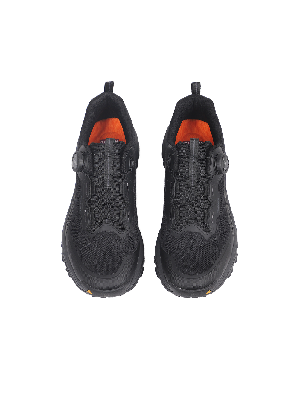 Мужские кроссовки Humtto 360413A-1 черного цвета — технологичная модель для активного образа жизни и повседневного использования. Оснащены системой быстрой шнуровки Rotating Buckle для удобной регулировки посадки, верх выполнен из комбинации текстиля и защитных вставок ТПУ с хорошей вентиляцией. Модель имеет усиленный носок для защиты от ударов и износостойкую подошву из EVA с резиновым протектором для надежного сцепления. Амортизирующая конструкция снижает нагрузку при ходьбе, а дышащая подкладка обеспечивает комфортный микроклимат. Кроссовки подходят для городских прогулок, туризма и легких походов в демисезонный период, отличаются долговечностью и универсальностью применения