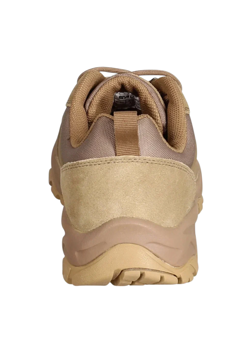 Тактические кроссовки THB T-002 цвета coyote brown — прочные и легкие полуботинки для использования в весенне-осенний период, выполненные из комбинации текстиля с полиуретановым усилением и натуральной кожи с водоотталкивающей пропиткой. Модель оснащена защитным глухим клапаном от попадания грязи, прорезиненной носочной частью для дополнительной защиты, двухкомпонентной подошвой с отличной амортизацией и противоскользящим протектором. Нейлоновая шнуровка обеспечивает надежную фиксацию, а сменная стелька повышает комфорт при носке. Анатомическая форма верха и качественный материал гарантируют долговечность и удобство при активном использовании.