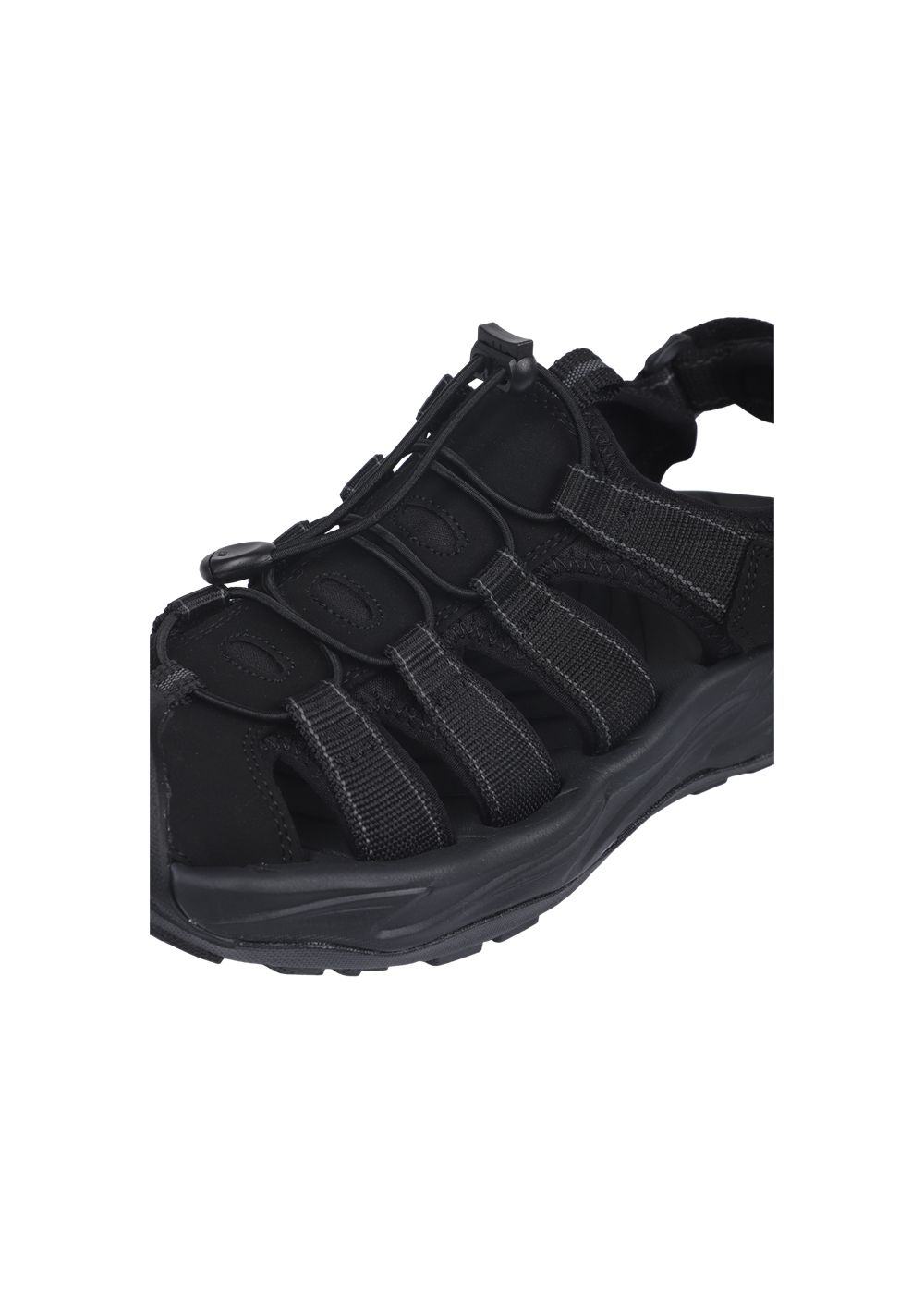 Сандалии Humtto 760289A-1 черного цвета — это легкая летняя модель с открытой конструкцией для максимального комфорта в жаркую погоду. Верх выполнен из прочного синтетического материала с перфорацией для отличной вентиляции, ремешок на щиколотке регулируется по размеру с помощью надежной пряжки. Анатомическая стелька обеспечивает правильное положение стопы, а гибкая подошва из износостойкой резины гарантирует надежное сцепление с поверхностью. Модель отличается практичностью в уходе и долговечностью, идеально подходит для повседневной носки, прогулок по городу и отдыха на природе