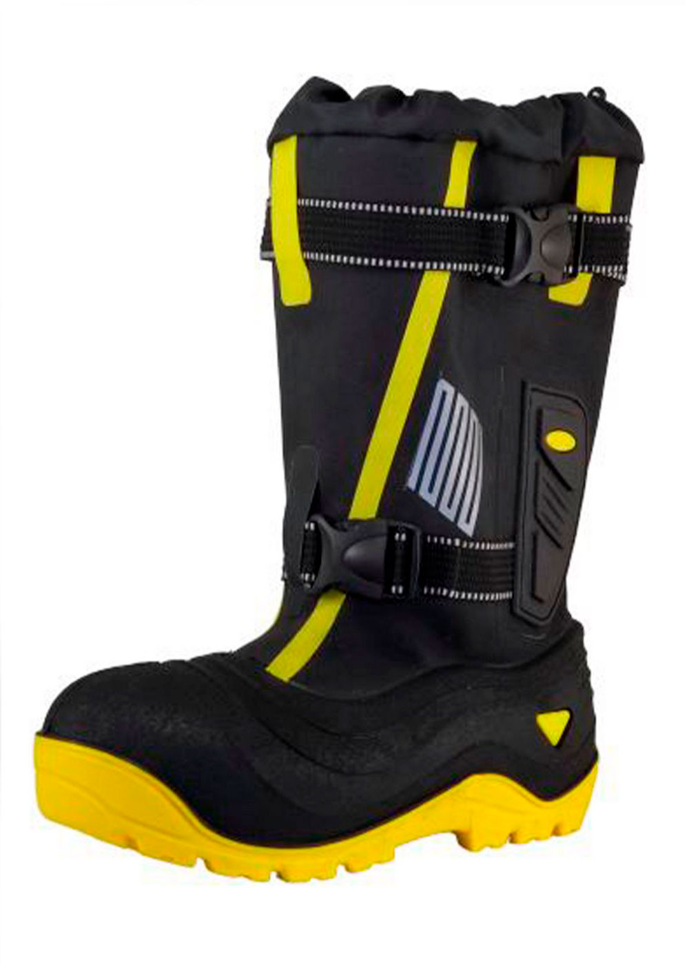 Удобная и практичная модель для зимней охоты и рыбалки. Голенище сапога изготовлено из материала «OXFORD» с двухсторонним покрытием ПУ, ТПУ. Швы на обуви проварены с помощью тока высокой частоты и герметизированы с изнаночной стороны термолентой. Нижняя часть галоши выполнена из материала ТПУ с добавлением нитрила. Вверх галоши изготовлен из двухкомпонентного вспененного полиуретана. Галоша имеет ортопедический перекат в носочной части, что обеспечивает снижение нагрузки на стопу при ходьбе. Галоша крепится на заготовку, методом прямого прилива, что обеспечивает полною герметизацию изделия по принципу AquaStop. Голенище с внутренней и с наружной стороны имеет антитравматические накладки. На внешнюю сторону голенища нанесен световозращающий элемент. Ширина голенища позволяет носить штанину утеплённых брюк как сверху обуви, так и заправленную во внутрь. Верхний клапан предотвращает попадание снега во внутрь обуви. Фиксация на ноге с помощью ремня.  В целях безопасности конструкция обуви не имеет металлических деталей. Сапоги укомплектованы вкладным многослойным чулком, который может использоваться как самостоятельная теплая обувь в охотничьем домике и для сна в спальнике. Влагопоглощающая теплая стелька создает комфорт. Теплая, удобная обувь предназначена для поездок на снегоходе и любителей отдыха на природе.
