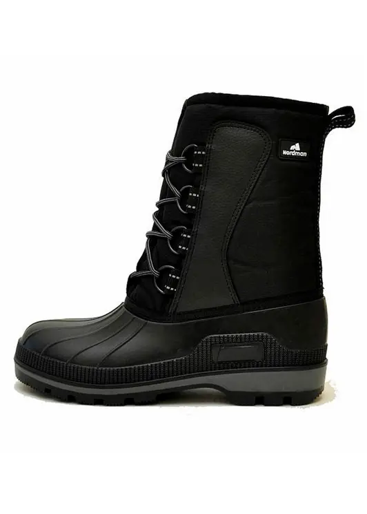Мужские зимние сноубутсы Nordman Kraft (ОХ-14 СК3). Низ из прочного морозоустойчивого материала ТЭП. Верх - из водоотталкивающей ткани «Oxford», дублированной поролоном. Внутри съемный утепляющий вкладыш из меха с применением фольгированного полотна и плотная стелька. Удобны и практичны.