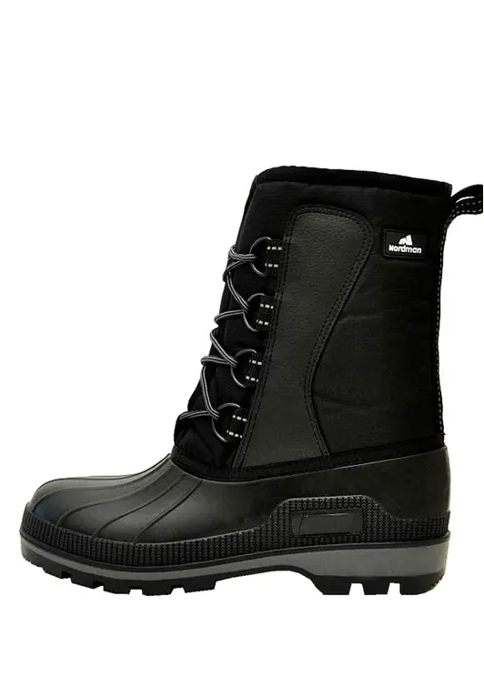 Мужские зимние сноубутсы Nordman Kraft (ОХ-14 СК3). Низ из прочного морозоустойчивого материала ТЭП. Верх - из водоотталкивающей ткани «Oxford», дублированной поролоном. Внутри съемный утепляющий вкладыш из меха с применением фольгированного полотна и плотная стелька. Удобны и практичны.
