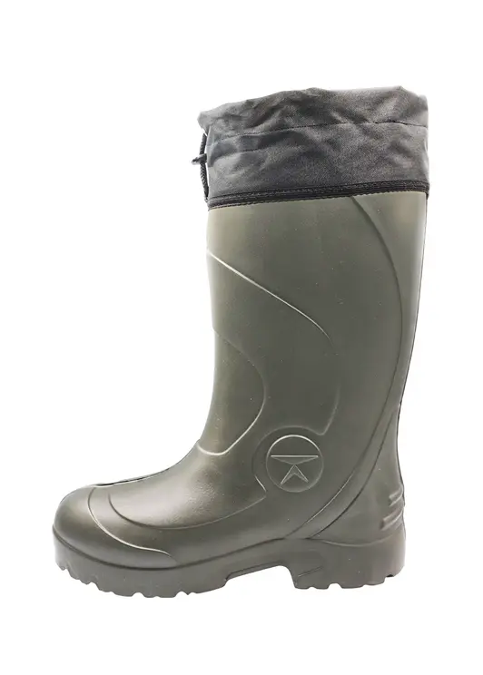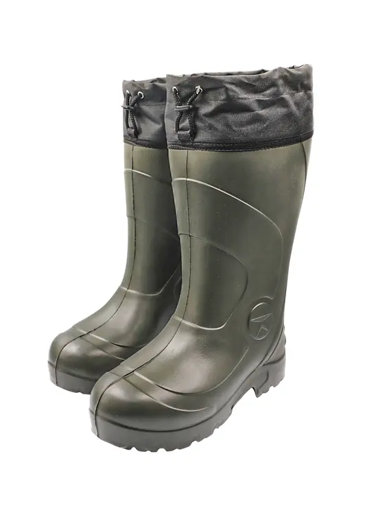 Мужские сапоги ЭВА «Барс» модели С-031 в оливковом цвете предназначены для эксплуатации при экстремально низких температурах до -50°C. Изготовлены из высококачественного материала ЭВА с трёхслойным утеплителем, включающим фольгированный слой для максимальной теплоизоляции. Анатомическая стелька и бесшовная конструкция обеспечивают комфорт при длительном ношении, а нескользящая подошва с глубоким протектором гарантирует надёжное сцепление с поверхностью. Лёгкие и прочные сапоги имеют влагостойкий внешний слой и специальную конструкцию, предотвращающую проникновение влаги, что делает их идеальным выбором для работы и активного отдыха в условиях крайнего севера.
