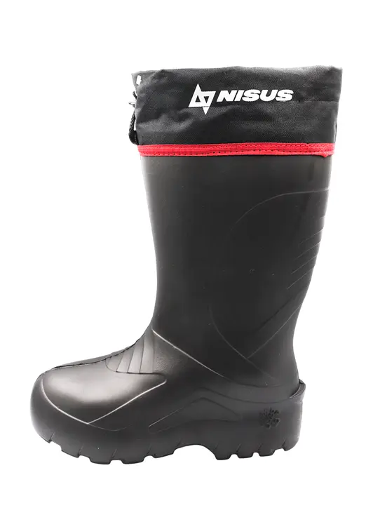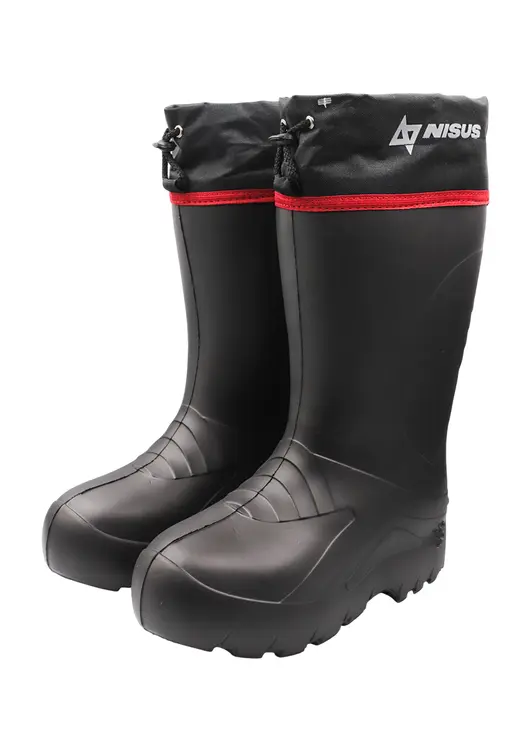 Сапоги ЭВА NISUS модели С-035 У в чёрном цвете рассчитаны на экстремальные низкие температуры, изготовлены из водонепроницаемого материала ЭВА с низкой теплоотдачей. Оснащены пятислойным гипоаллергенным вкладным чулком, включающим спандбонд для сбора конденсата, фольгированный слой для термоизоляции, современное нетканое полотно, полимерный материал для сохранения тепла и ворсовое трикотажное полотно для отвода влаги. Конструкция дополнена утеплённой манжетой, не даёт усадки при стирке и обеспечивает максимальный комфорт при носке в условиях сильного холода.