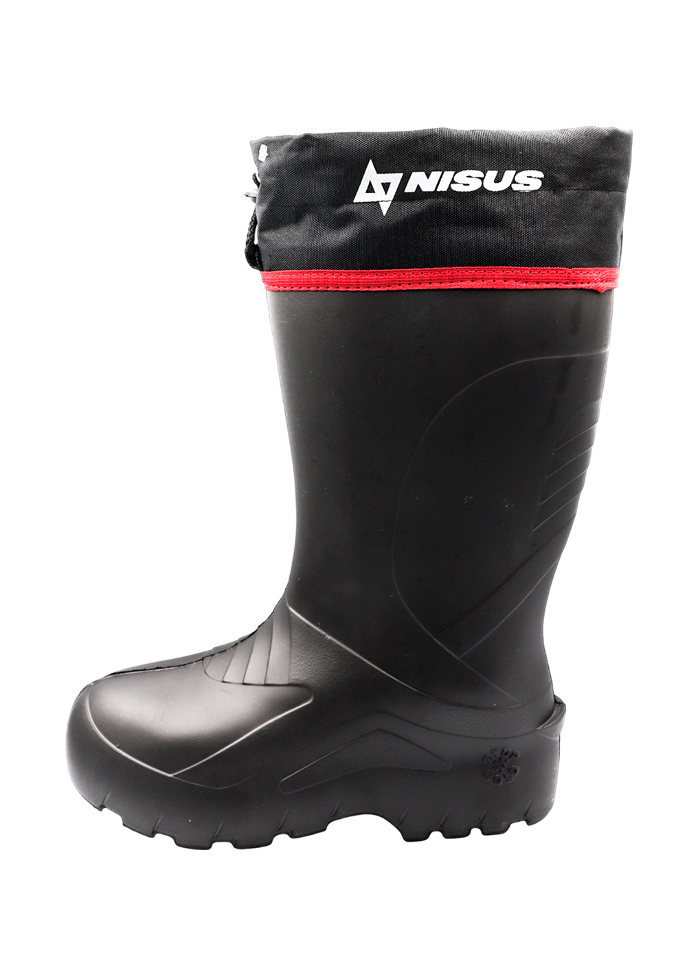 Сапоги ЭВА NISUS модели С-035 У в чёрном цвете рассчитаны на экстремальные низкие температуры, изготовлены из водонепроницаемого материала ЭВА с низкой теплоотдачей. Оснащены пятислойным гипоаллергенным вкладным чулком, включающим спандбонд для сбора конденсата, фольгированный слой для термоизоляции, современное нетканое полотно, полимерный материал для сохранения тепла и ворсовое трикотажное полотно для отвода влаги. Конструкция дополнена утеплённой манжетой, не даёт усадки при стирке и обеспечивает максимальный комфорт при носке в условиях сильного холода.