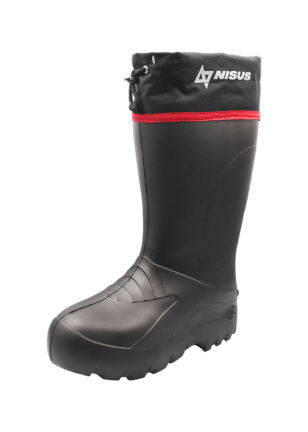 Сапоги ЭВА NISUS модели С-035 У в чёрном цвете рассчитаны на экстремальные низкие температуры, изготовлены из водонепроницаемого материала ЭВА с низкой теплоотдачей. Оснащены пятислойным гипоаллергенным вкладным чулком, включающим спандбонд для сбора конденсата, фольгированный слой для термоизоляции, современное нетканое полотно, полимерный материал для сохранения тепла и ворсовое трикотажное полотно для отвода влаги. Конструкция дополнена утеплённой манжетой, не даёт усадки при стирке и обеспечивает максимальный комфорт при носке в условиях сильного холода.