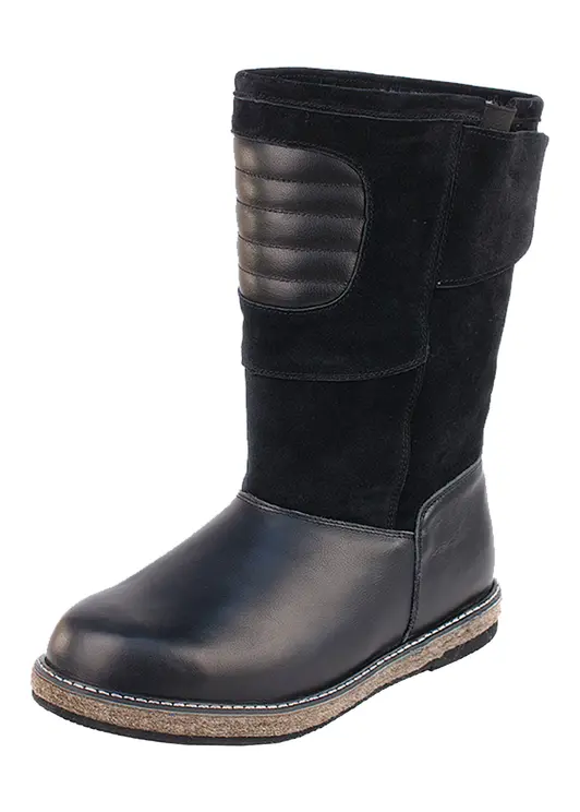 Сапоги-монголки мужские. Легкие, удобные, теплые. Голенище оснащено вставкой из резинки, которая закрывается клапаном с липучкой,что позволяет регулировать ширину голенища до 3-х см. Внутри теплая овчина по всему сапогу, межподкладка из термовойлока, натуральная кожа, натуральная замша. Производство Дятьковской обувной фабрики Рошва. Голенище проклеено, держит форму. Подошва из толстого войлока дублированного микропористой резиной не промерзает в сильный мороз. Температурный режим до -45С.
