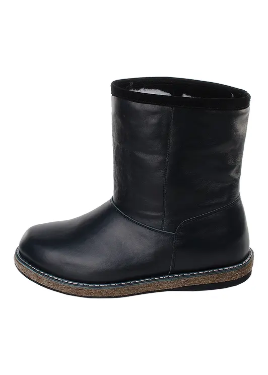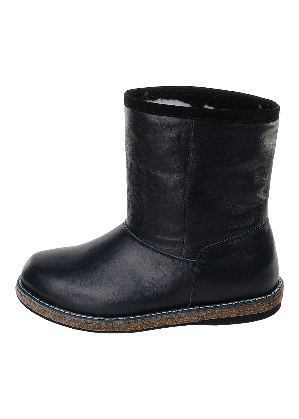 А817.01 Полусапоги мужские черные кожаные на войлоке