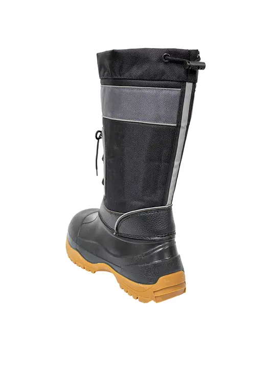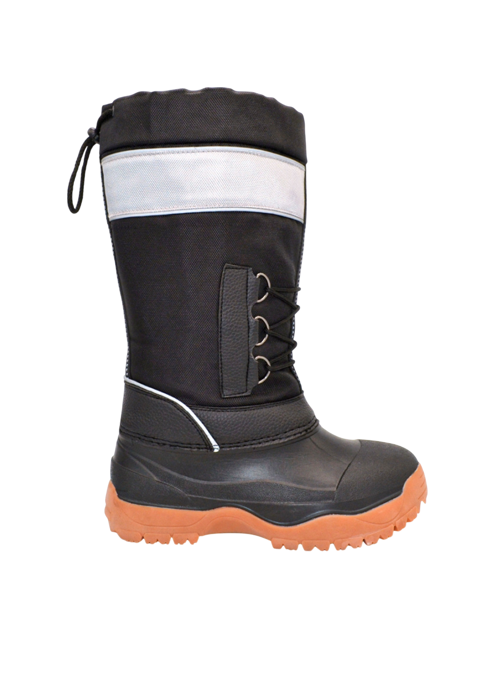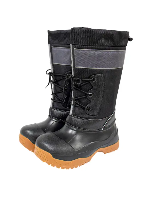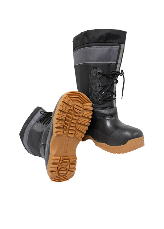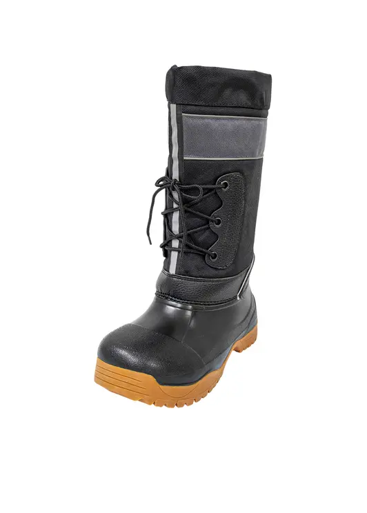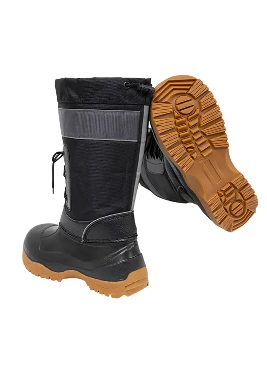 Мужские зимние сапоги ТИТАН(-100) чёрного цвета — экстремально тёплая обувь. Конструкция включает двойную галошу из ЭВА с резиновым нижним слоем, верх выполнен из влагоотталкивающей ткани Oxford с дополнительным нетканым материалом. Модель оснащена съёмным многослойным вкладышем с натуральным мехом (не менее 70% шерсти), регулируемой манжетой на кулиске и удобной шнуровкой выше лодыжки. Сапоги оборудованы светоотражающими элементами для безопасности и подходят для охоты, рыбалки и треккинга в условиях экстремального холода.