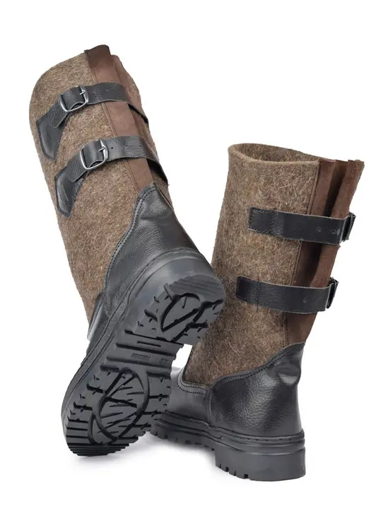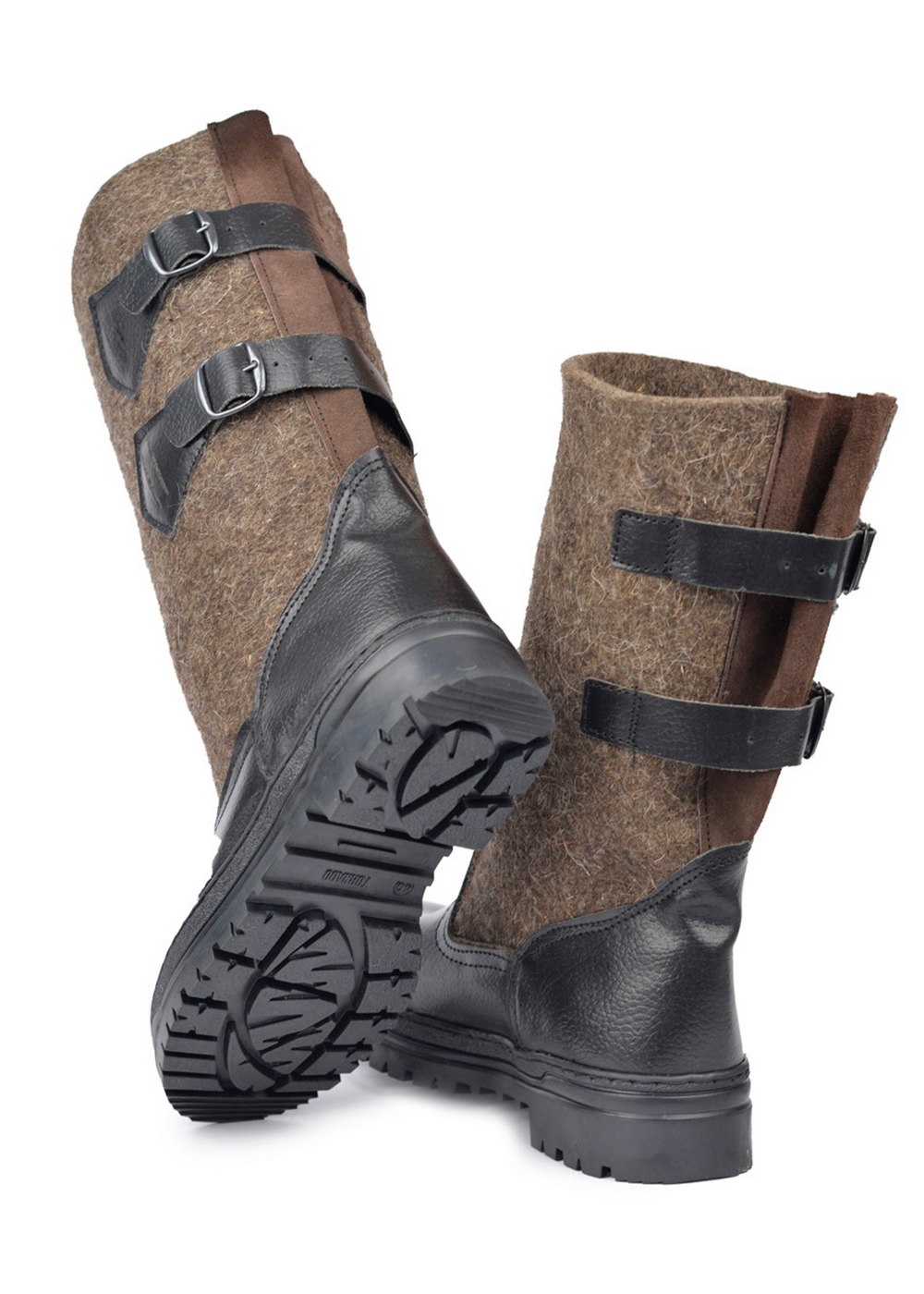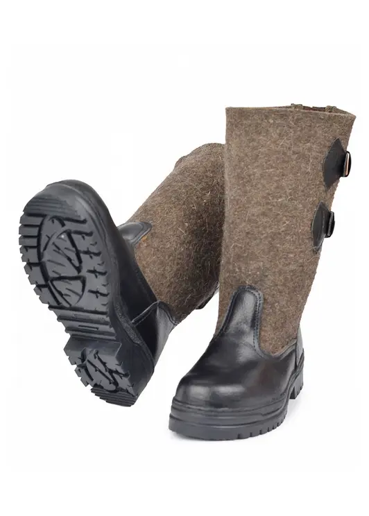 Сапоги изготовлены из войлока (грубая натуральная овечья шерсть) с маслобензостойкой подошвой(ТЭП) клеепрошивного метода крепления. Допускаются различия в оттенках войлока в зависимости от партии.