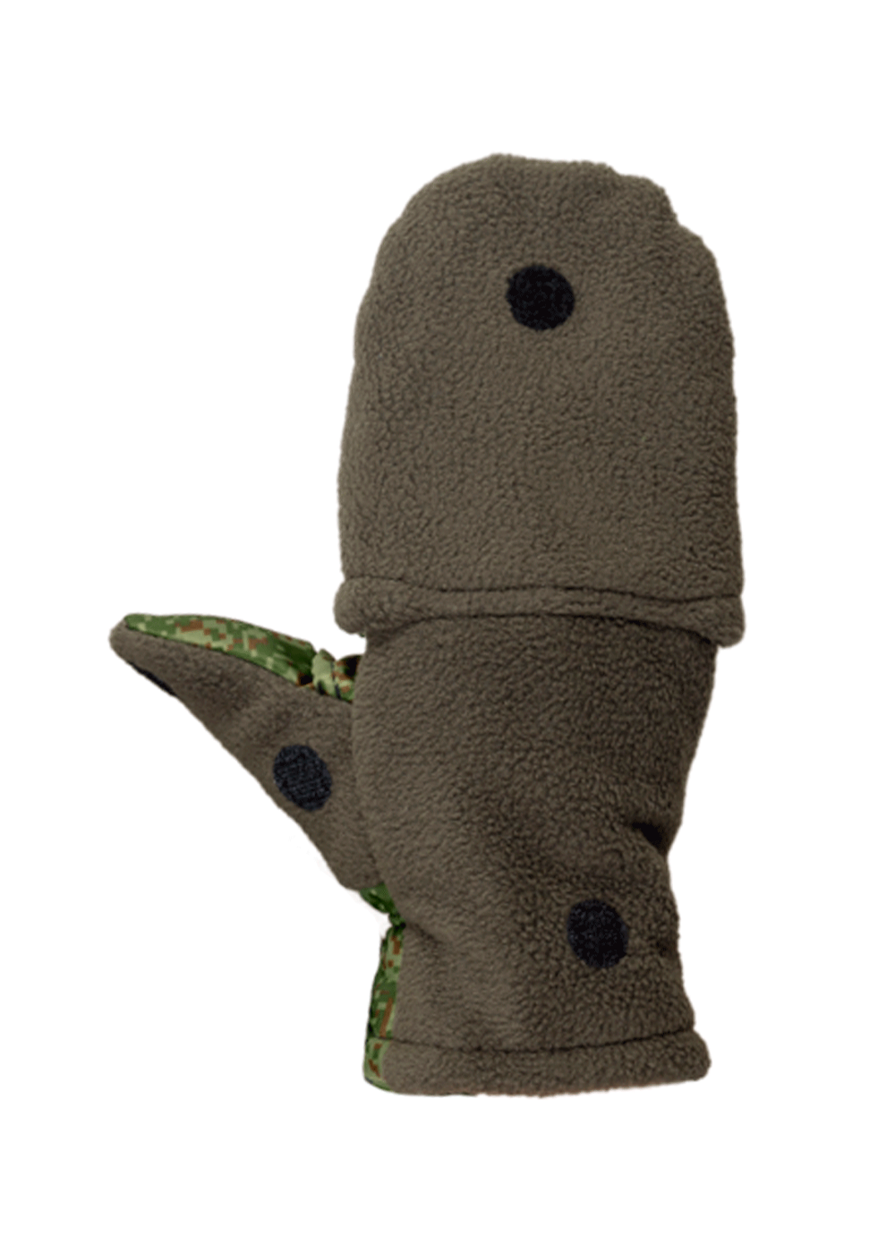 • при снятии теплой верхней рукавички, защищенной оксфордом, на руке остается перчатка, без указательного и среднего пальцев, а также с прорезью для освобождения большого пальца руки