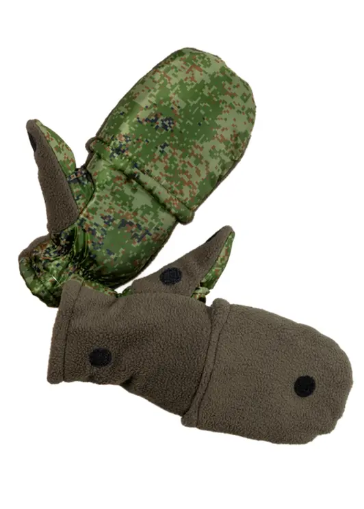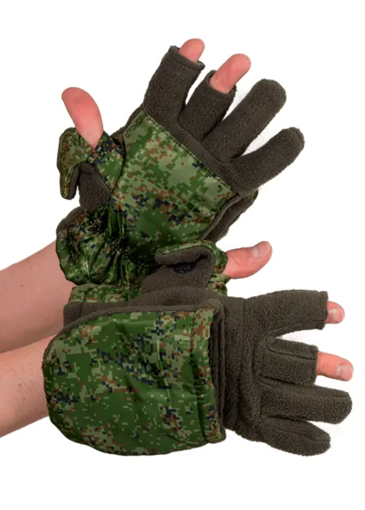 • при снятии теплой верхней рукавички, защищенной оксфордом, на руке остается перчатка, без указательного и среднего пальцев, а также с прорезью для освобождения большого пальца руки