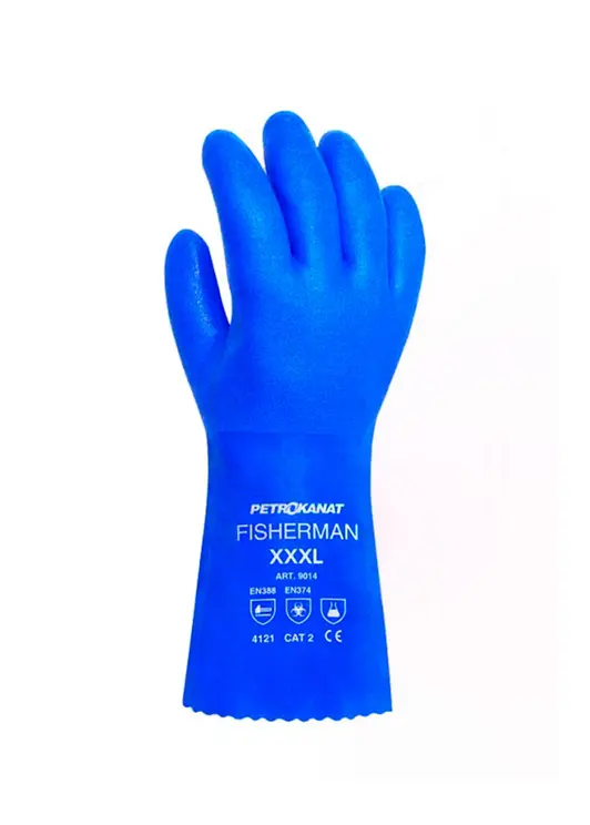Перчатки ПВХ Fisherman с хлопчатобумажной подкладкой синие, размер 300 мм. Обеспечивают защиту рук от механических воздействий, воды и химических веществ.