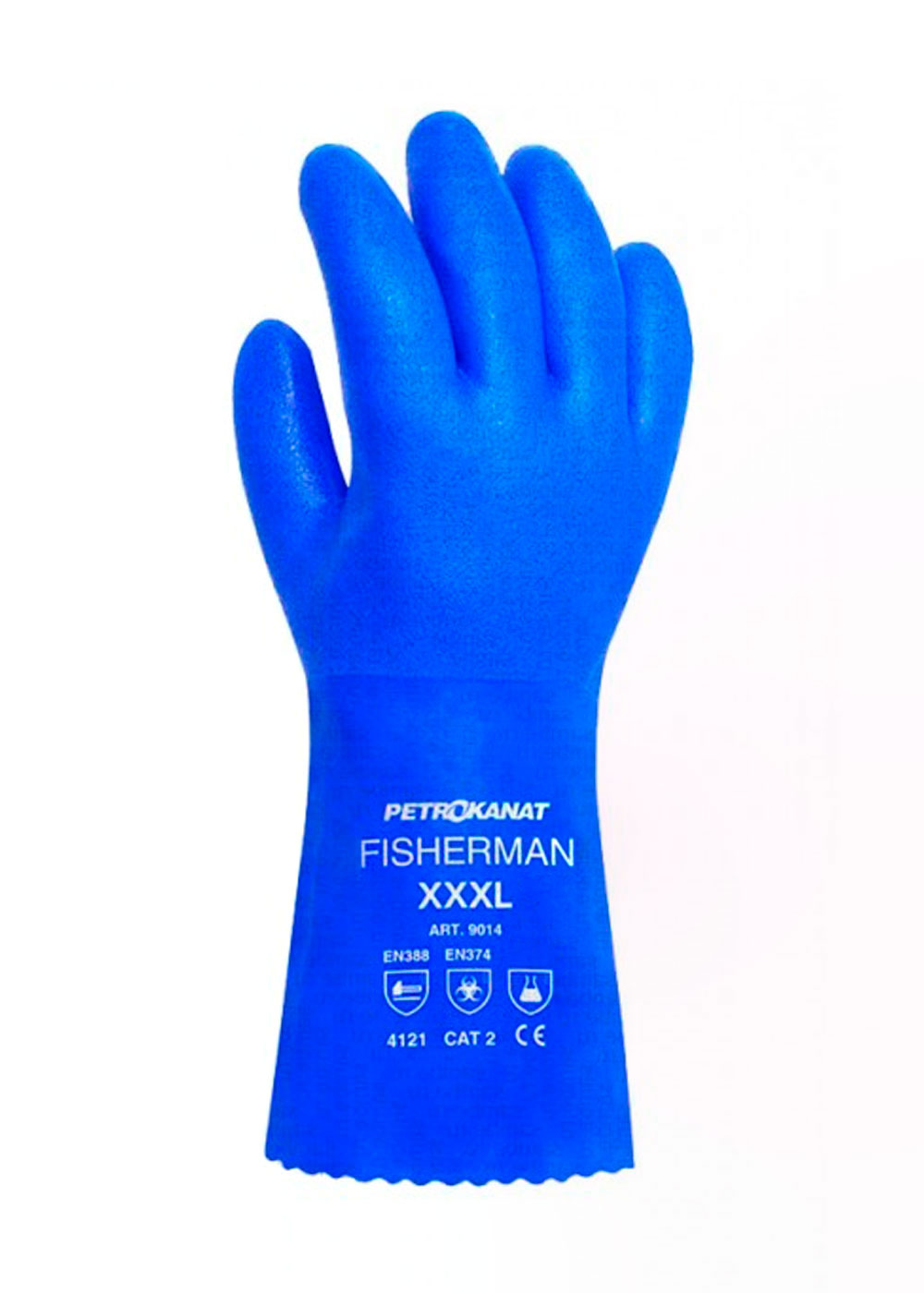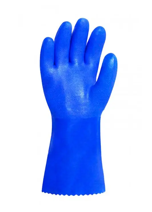 Перчатки ПВХ Fisherman с хлопчатобумажной подкладкой синие, размер 300 мм. Обеспечивают защиту рук от механических воздействий, воды и химических веществ.