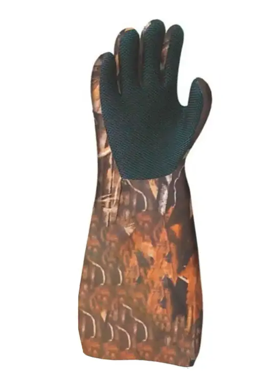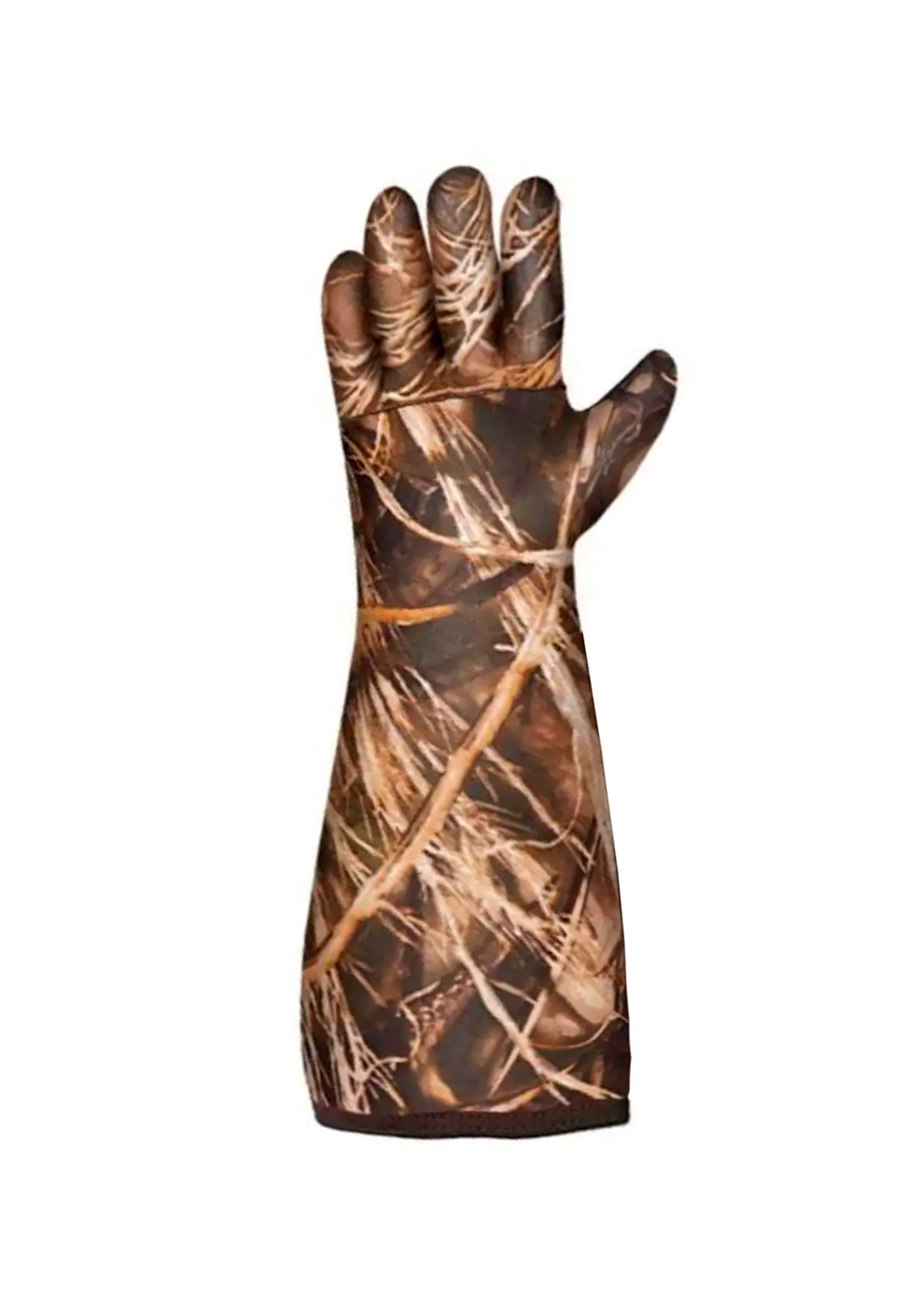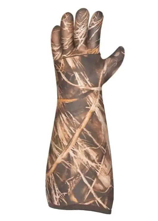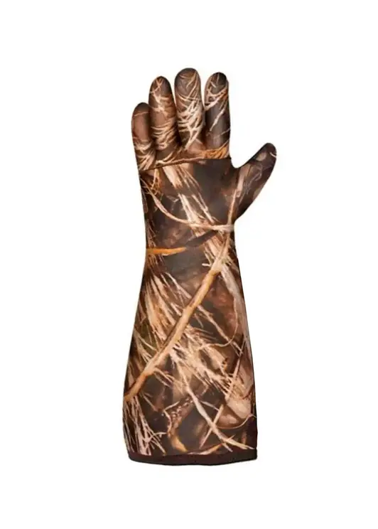 Перчатки универсальные для охоты на водоёме изготовлены из высококачественного неопрена с водонепроницаемостью 100%. Они обеспечивают надёжную защиту от влаги и холода, что особенно важно при охоте на водоёмах в прохладную погоду или в условиях повышенной влажности. Цвет перчаток Realtree Max-5, который имитирует окраску листьев и веток деревьев, что делает их незаметными на фоне окружающей среды. Это позволяет охотнику оставаться незамеченным и повышает шансы на успешную охоту. Длина перчаток составляет 50 см, что обеспечивает комфортную посадку на руке и свободу движений. Манжеты перчаток регулируются, что позволяет подогнать размер под индивидуальные особенности руки. Перчатки имеют нескользящую поверхность в области ладоней, что обеспечивает надёжный захват и предотвращает скольжение рук при работе с чучелами или подборе уток. Это делает процесс охоты более комфортным и безопасным.
