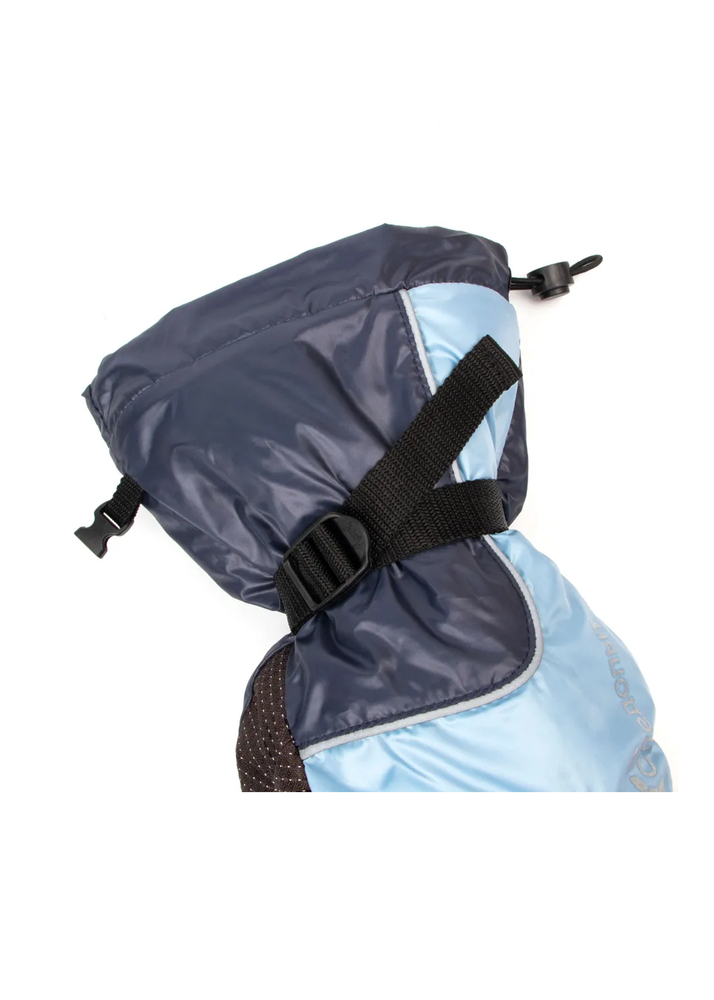 Особая конструкция рукавиц включает усиленные ладони из искусственной кожи, что значительно повышает износостойкость и обеспечивает надежный захват. Система фиксации с регулируемой стропой на запястье и эластичной утяжкой на манжете гарантирует плотное прилегание и защиту от проникновения холода.