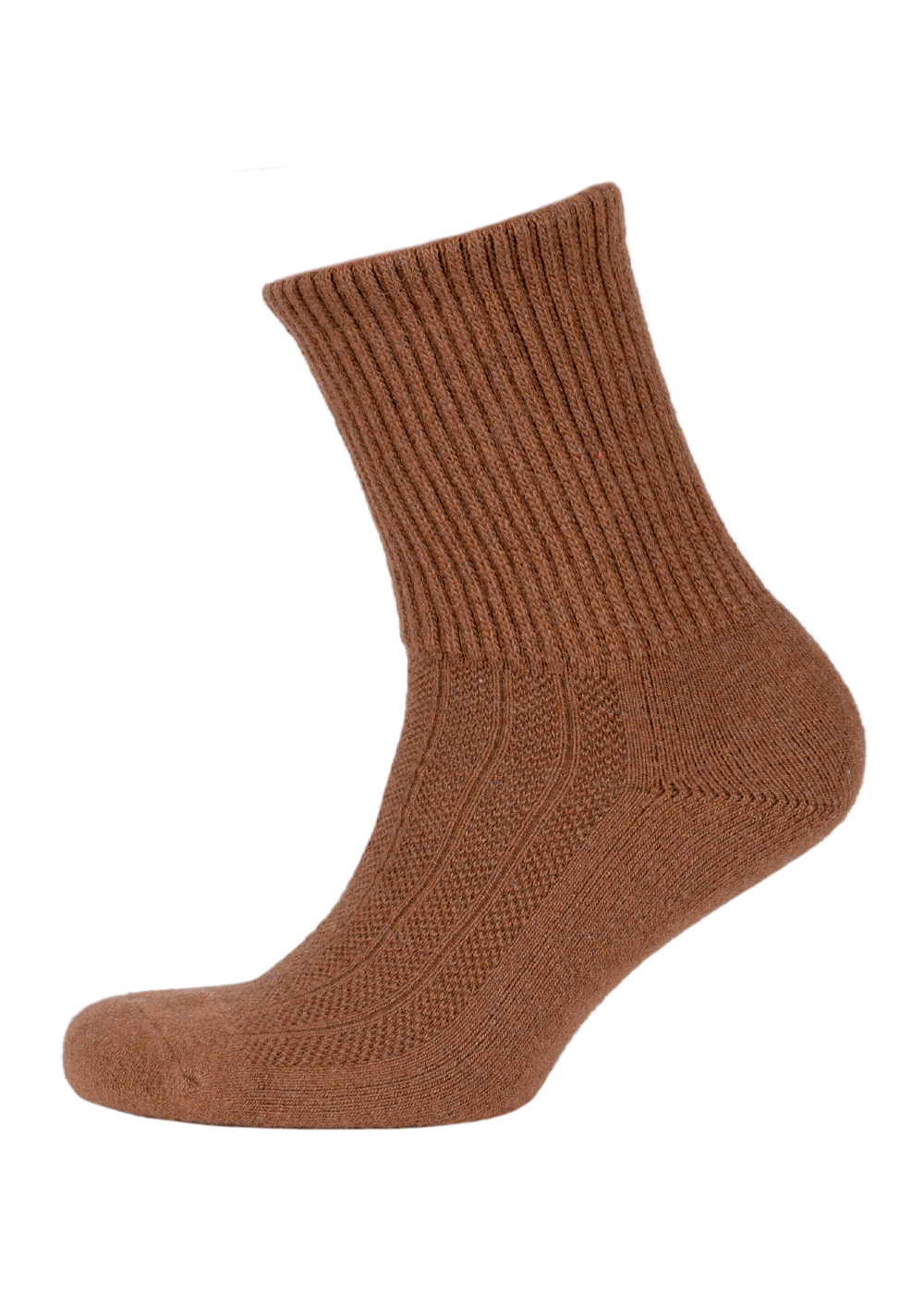 Эти носки изготовлены из натуральной монгольской шерсти. Они обеспечивают теплоизоляцию, быстро сохнут и обладают антибактериальными свойствами. Рыжий цвет делает их универсальными и подходящими для повседневной носки в холодное время года или для занятий зимними видами спорта.