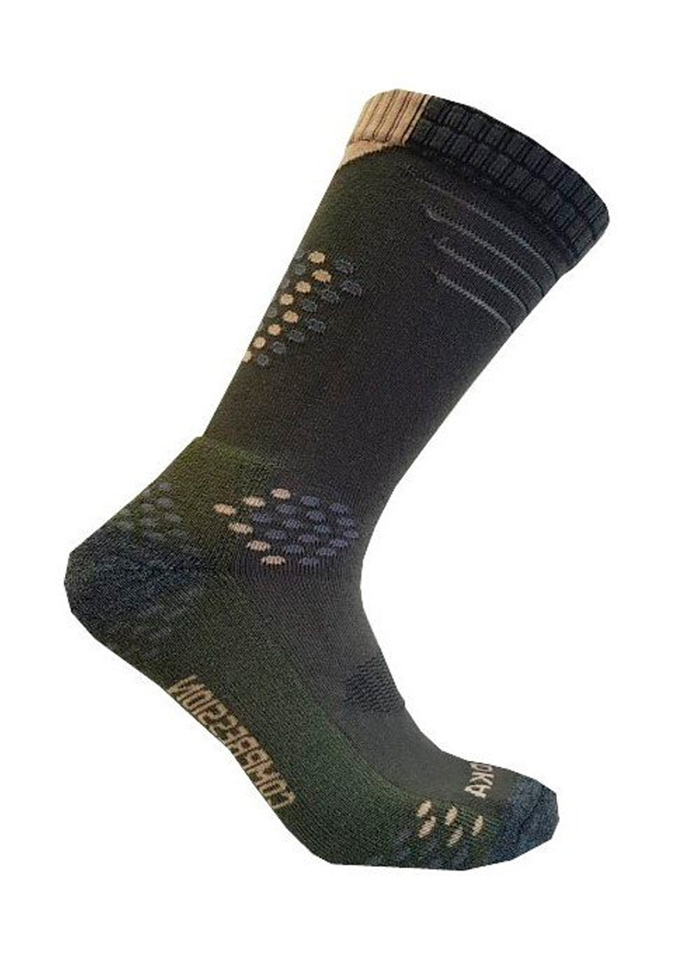 Термоноски ORDKA 22/6BR хаки — это специализированные термоноски для активного использования в холодное время года. Активная высокая резинка без надавливания, Плотная посадка и поддержка голеностопа, структурные “каналы” на подошве для регулирования температуры, двойная вязка в области пятки, усиленная подошва для поглощения нагрузки, защитная зона на ахилле. Термоноски ORDKA 22/6BR хаки — это отличный выбор для активного времяпрепровождения в холодное время года. Благодаря продуманному составу материалов и специальной конструкции, они обеспечивают комфорт и тепло при высоких нагрузках.