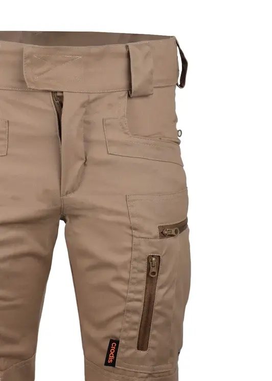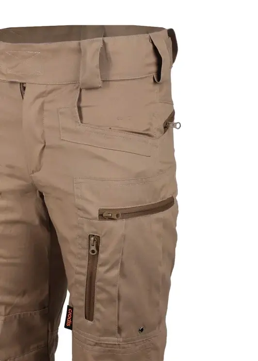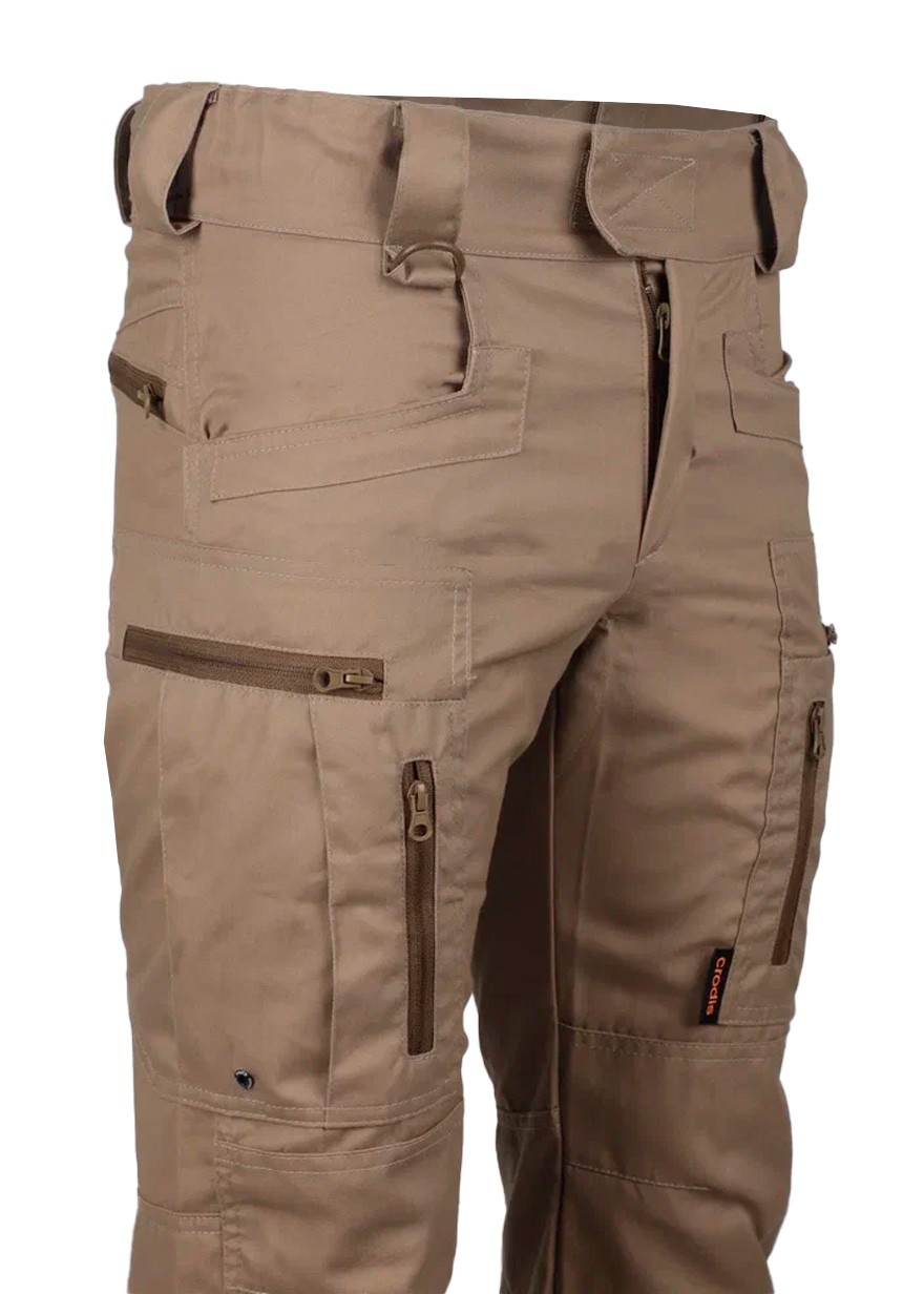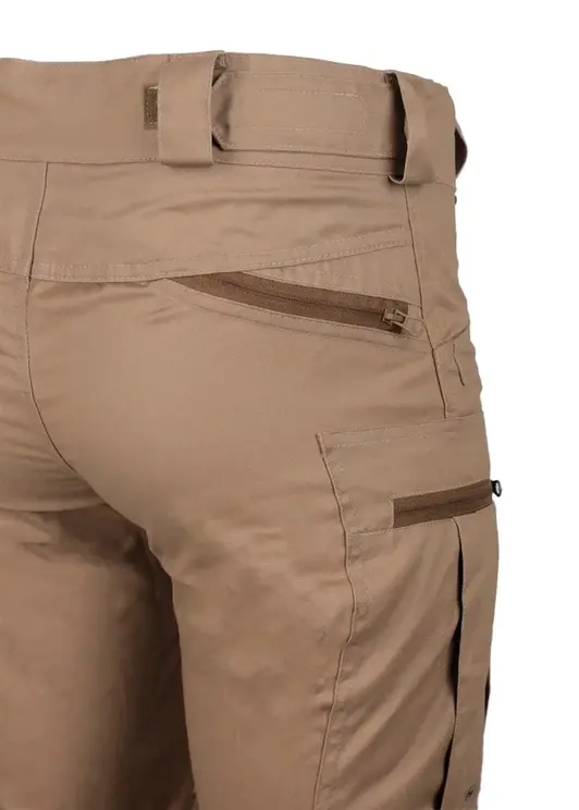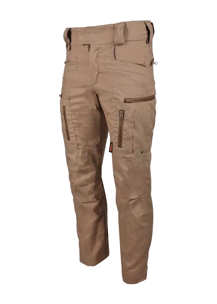 Мужские летние брюки предназначены для туризма, активного отдыха, охоты и рыбалки. Они изготовлены из смесовой ткани твил (35% хлопок, 65% полиэстер), что обеспечивает комфорт в носке. Брюки не имеют мембраны и не шуршат при движении, что делает их идеальными для охоты. Пояс оснащен шлевками под ремень и липучками для регулировки по талии, а также функциональными карманами на молнии.